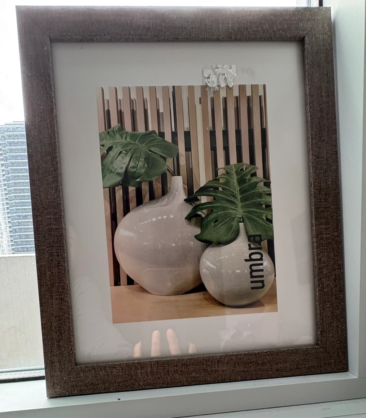 Selling a new photo frame from Umbra. It features a modern design with vases and monstera leaves, perfect for adding a touch of style to any room! Size: 8”x10” Pick up and cash only please. Location: The East Mall