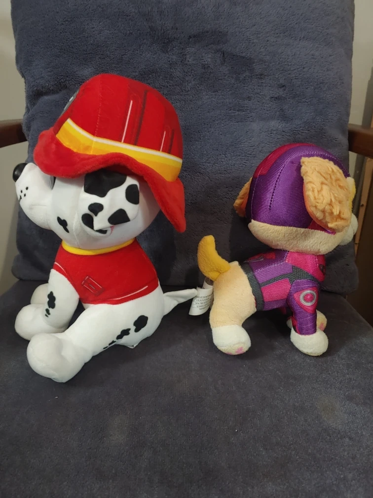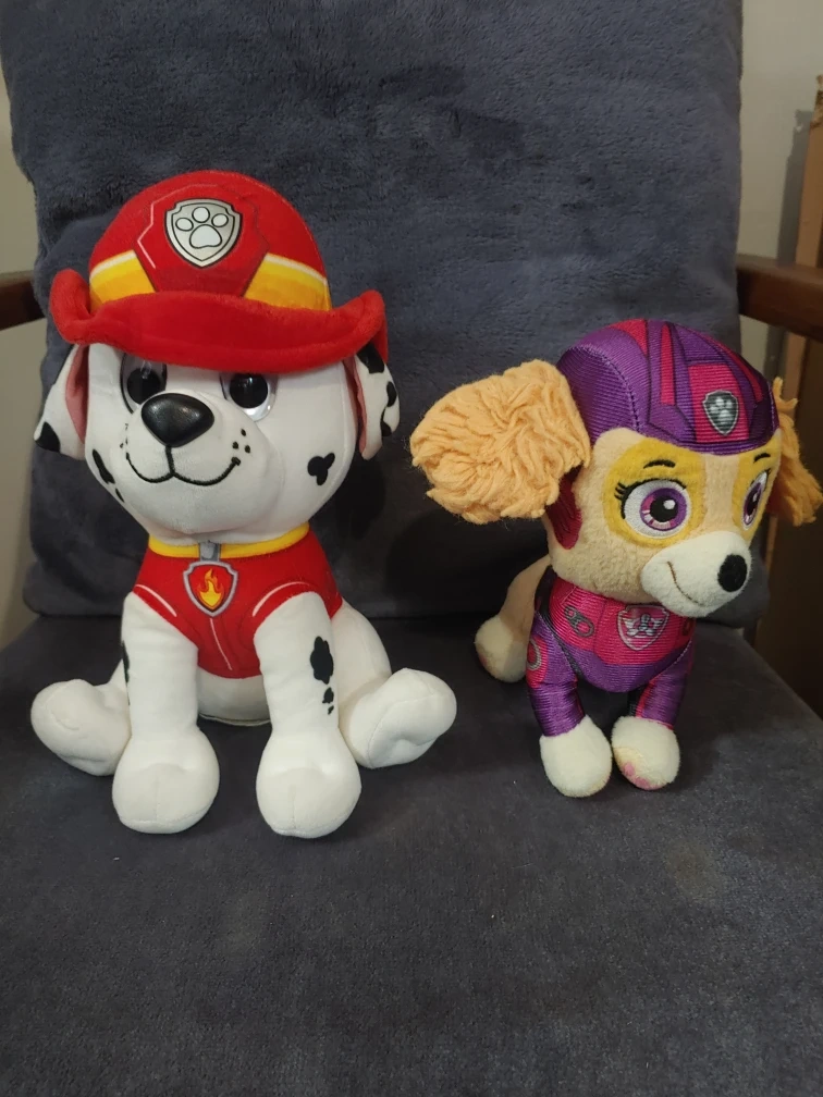 Selling a pair of Paw Patrol plush toys! You'll get Marshall (the fire dog) and Skye (the pilot). They're in great shape and ready for a new home! $5 each