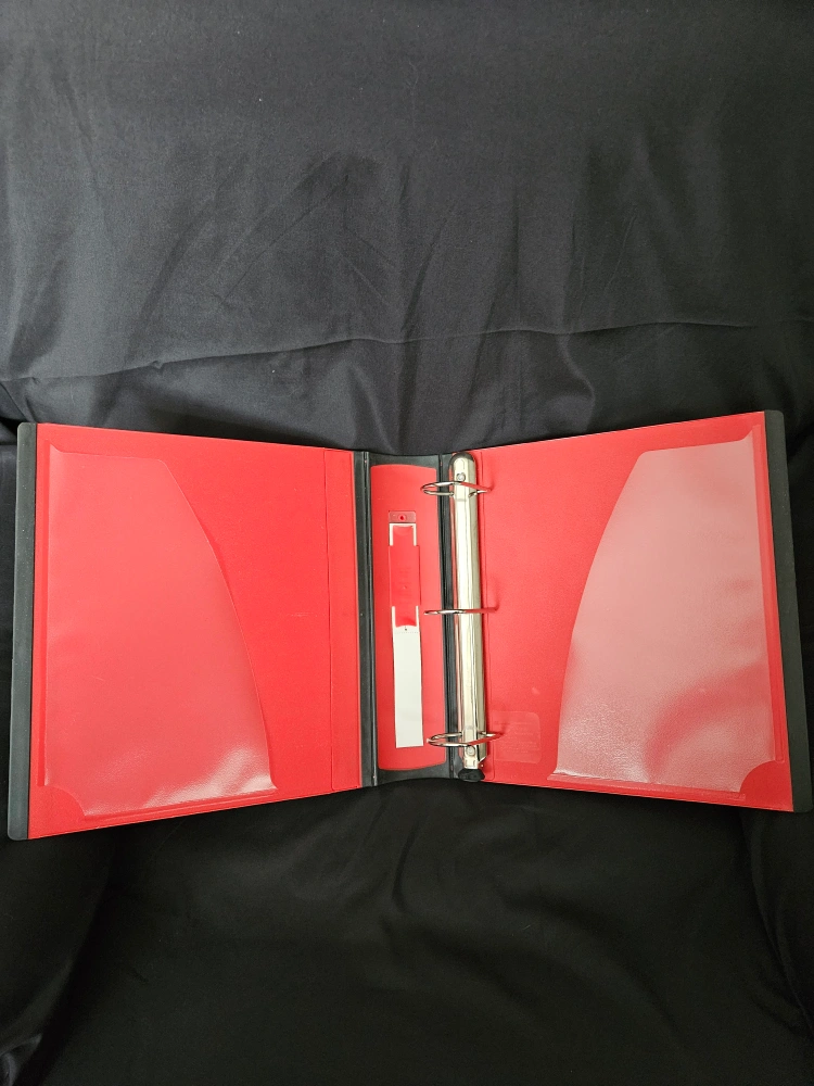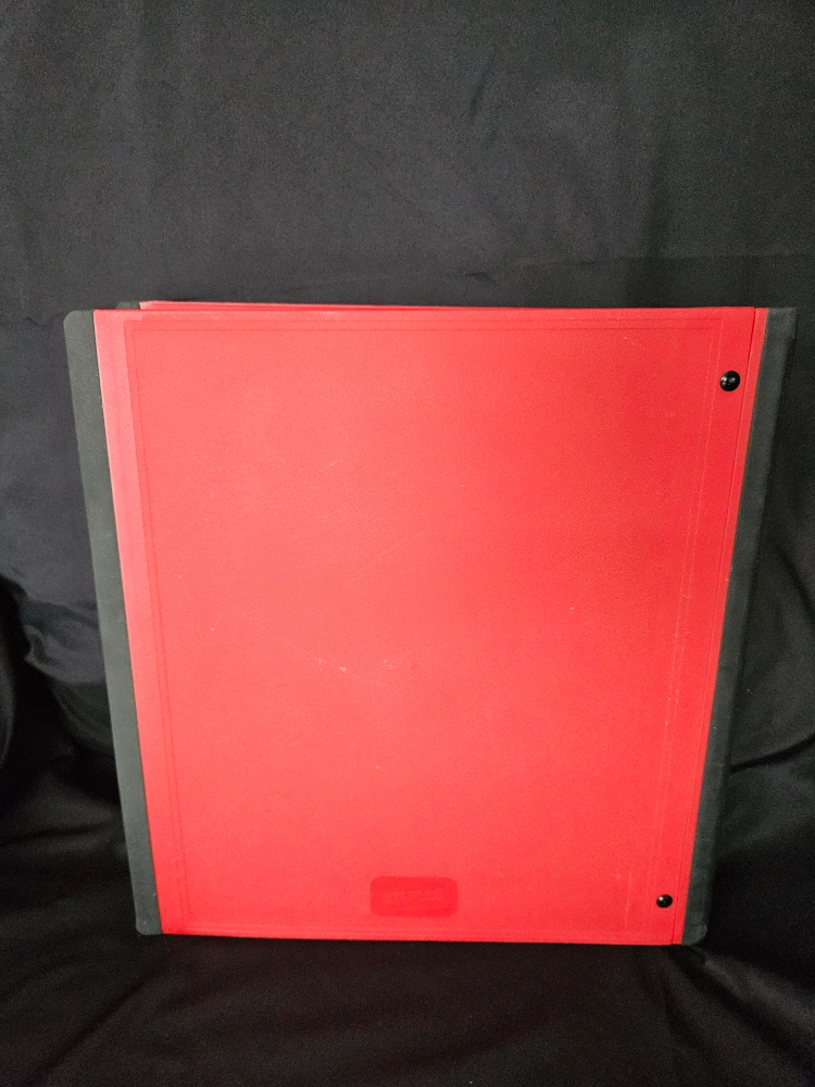 Staples Better Binder (2 Inch red) with 540 sheet capacity. Easy open D rings, a reinforced rubberized spine and easy insert for label. In very good used condition. there are some marks from use inside and on back.