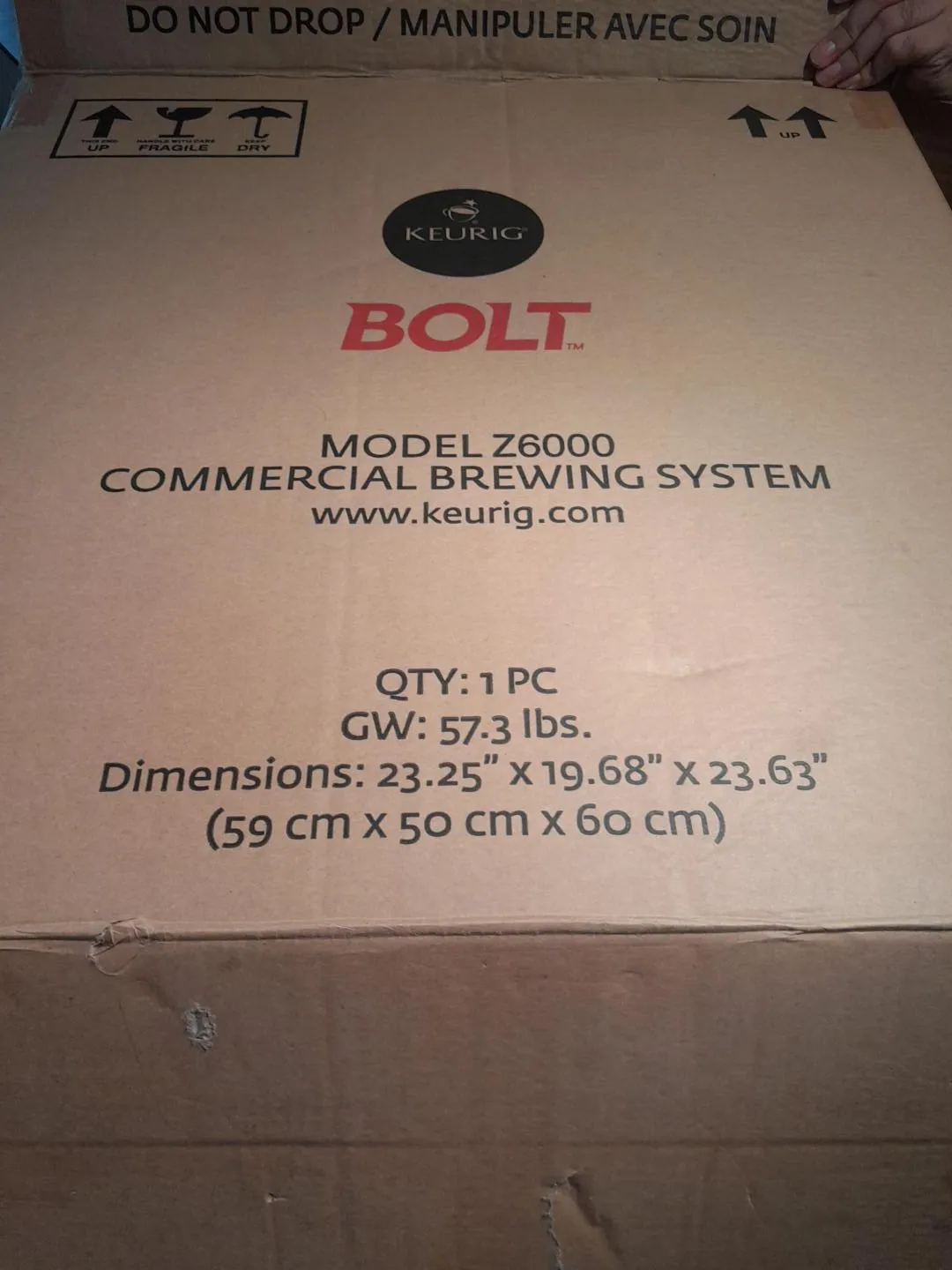 Selling a brand new Keurig Bolt Z6000 Commercial Brewing System! It's still in the box with all the components included. Dimensions are 23.25" x 19.68" x 23.63" (59 cm x 50 cm x 60 cm). Great for a small business or office!