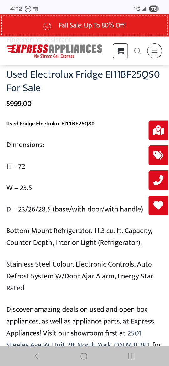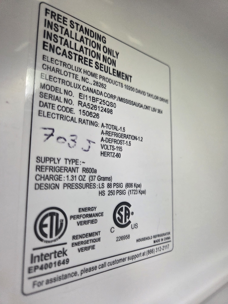 Electrolux EI11BF25QS0 Free Standing Refrigerator