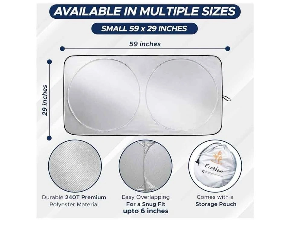 Brand New EcoNour Car Sun Shade Windshield | Reflective Car Window Sun Shades for Ultimate Dashboard Protection | Foldable Car Interior Accessories for Sun Heat | Small (59 x 29 inches)