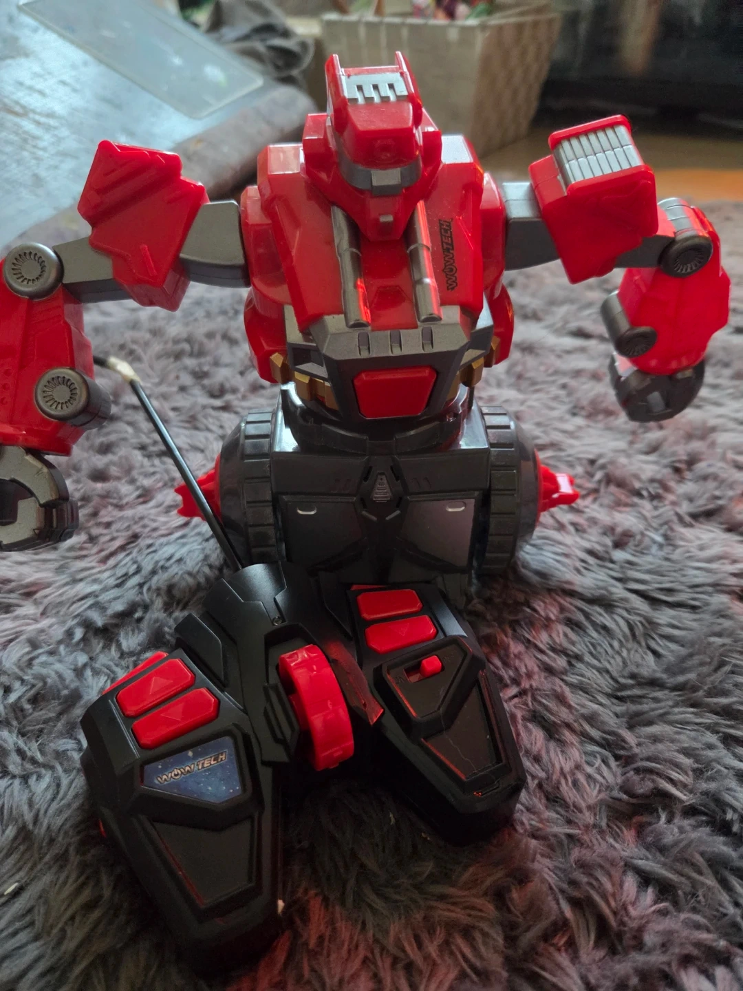 Set of two WOWW TECH remote control fighting robots, one red and one blue. Each robot comes with its own remote control. They're designed for interactive play.