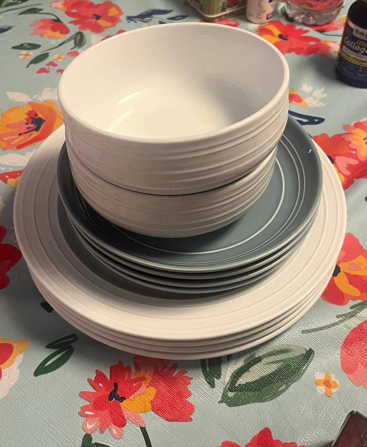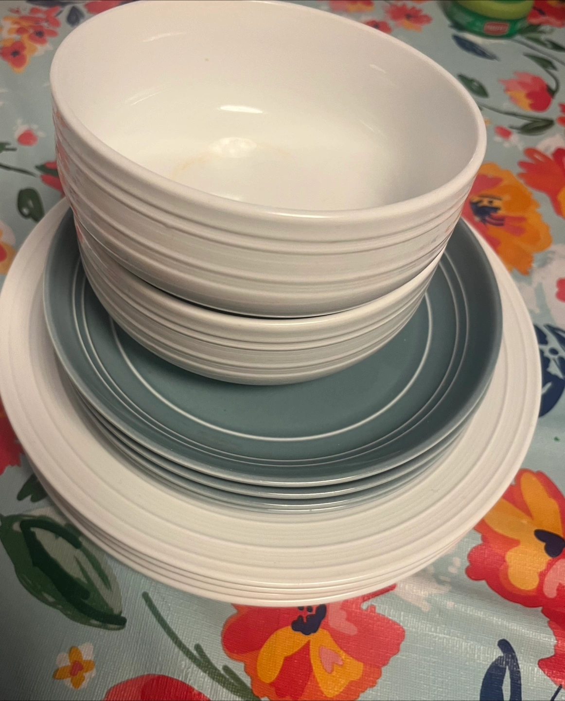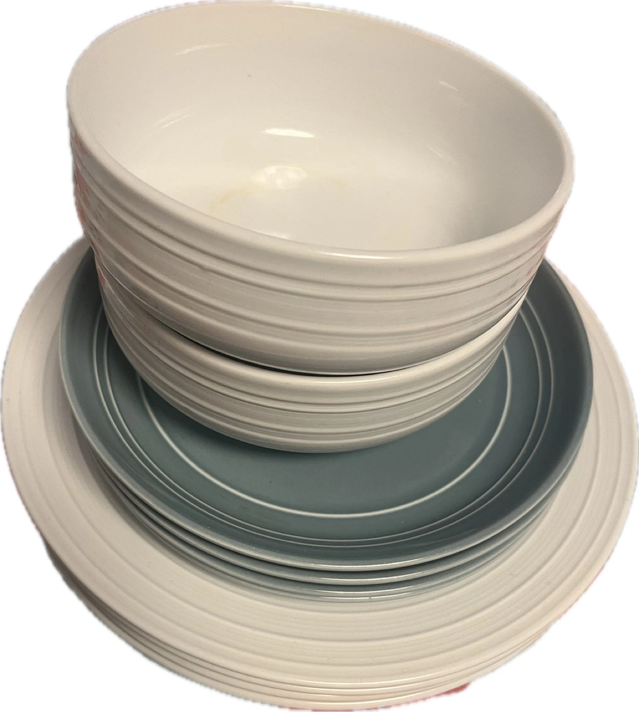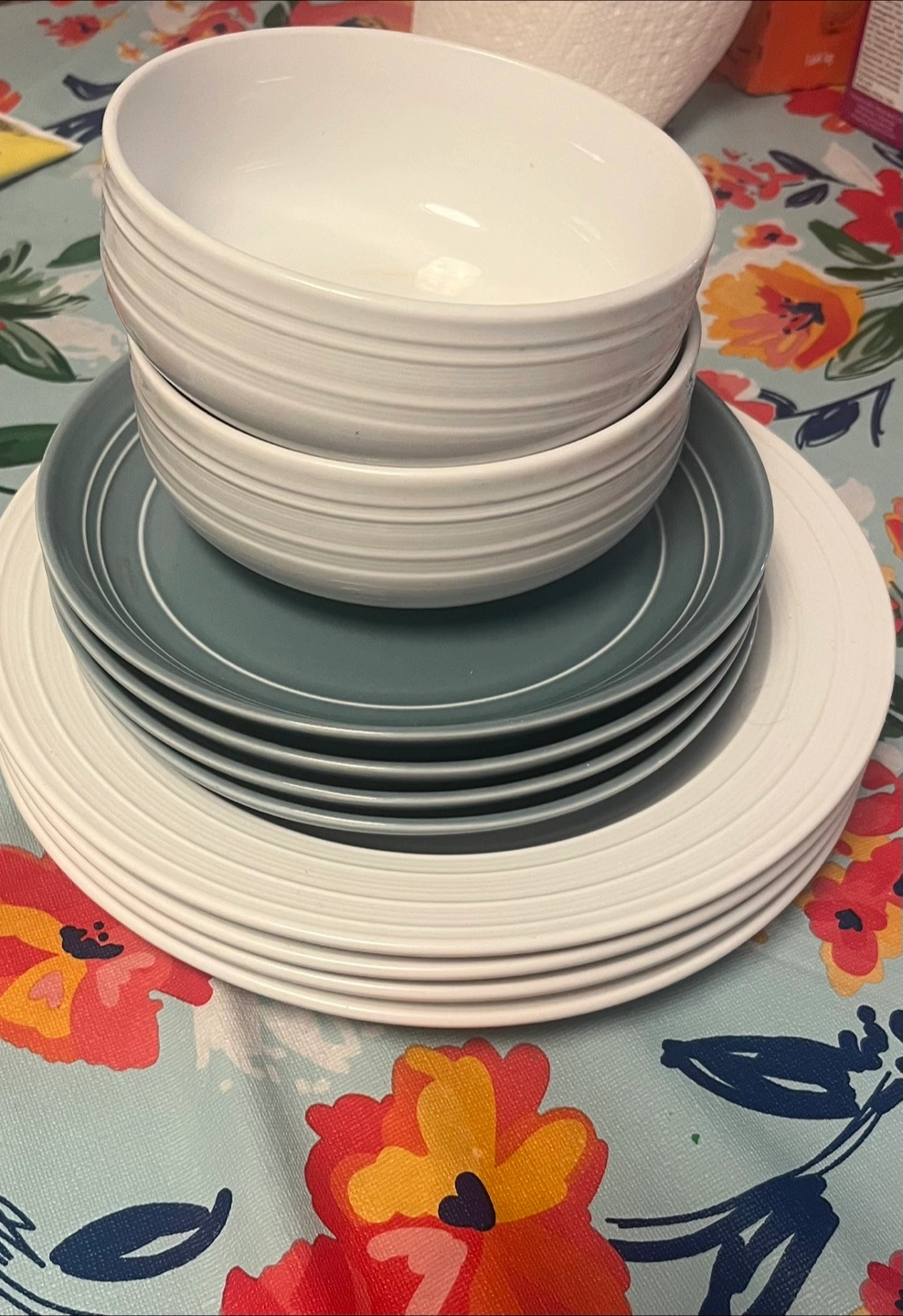 Selling a set of dishes in great condition! The set includes both white and blue plates and bowls. Perfect for everyday use or special occasions