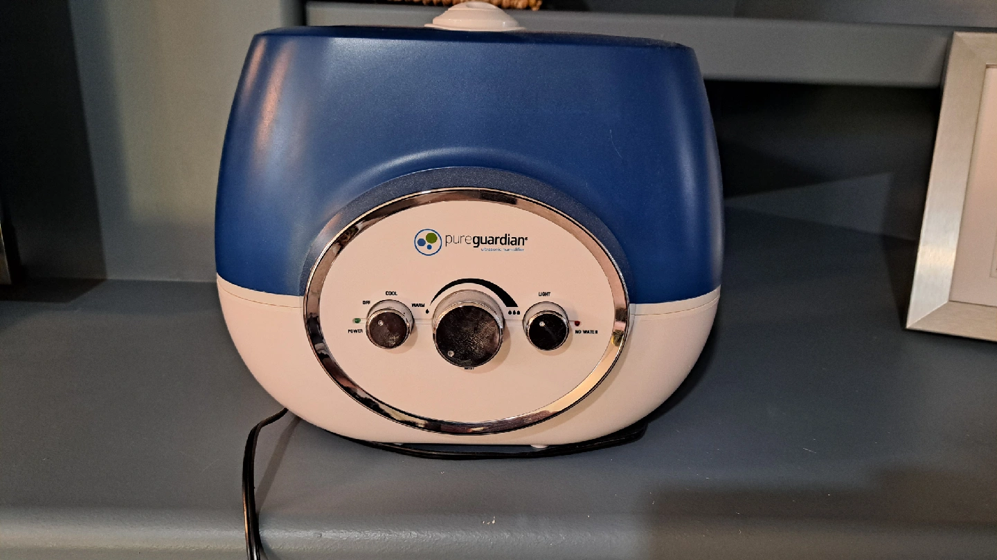 I'm selling a PureGuardian humidifier that's in great shape! It has settings for cool and warm mist, and also a light. It's perfect for adding moisture to the air in your home, especially during the dry winter months