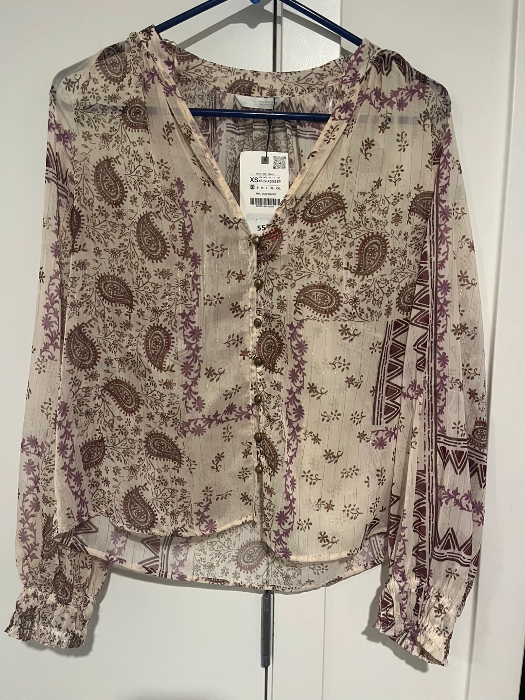 Zara blouse in a beautiful paisley pattern! It's a size XS and in great condition. Perfect for adding a touch of boho chic to your wardrobe