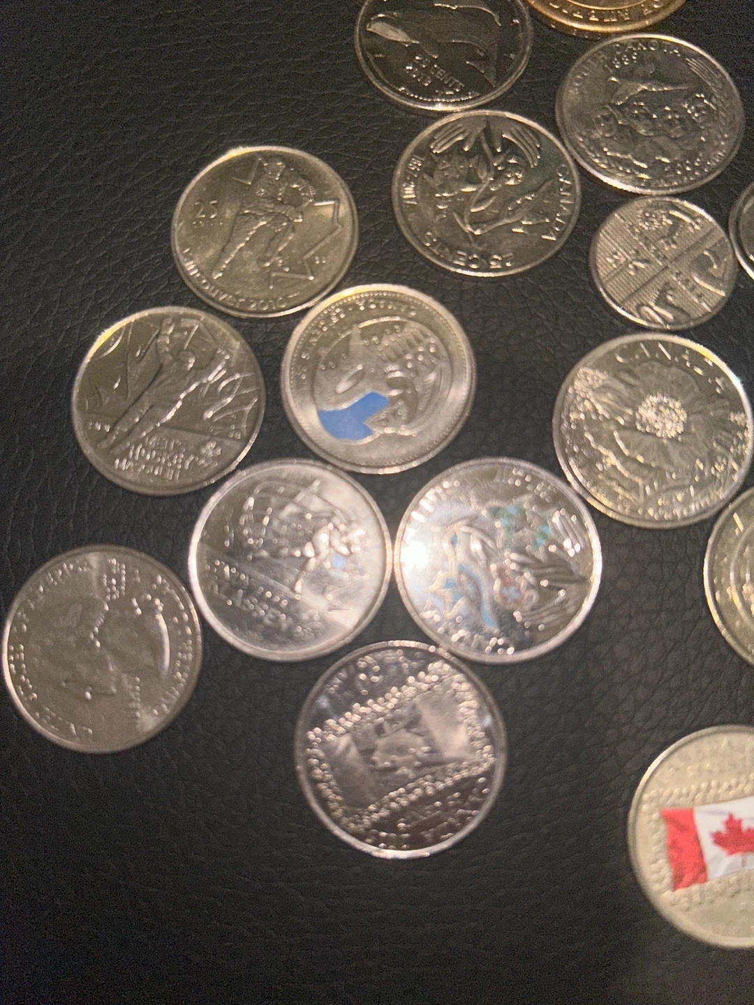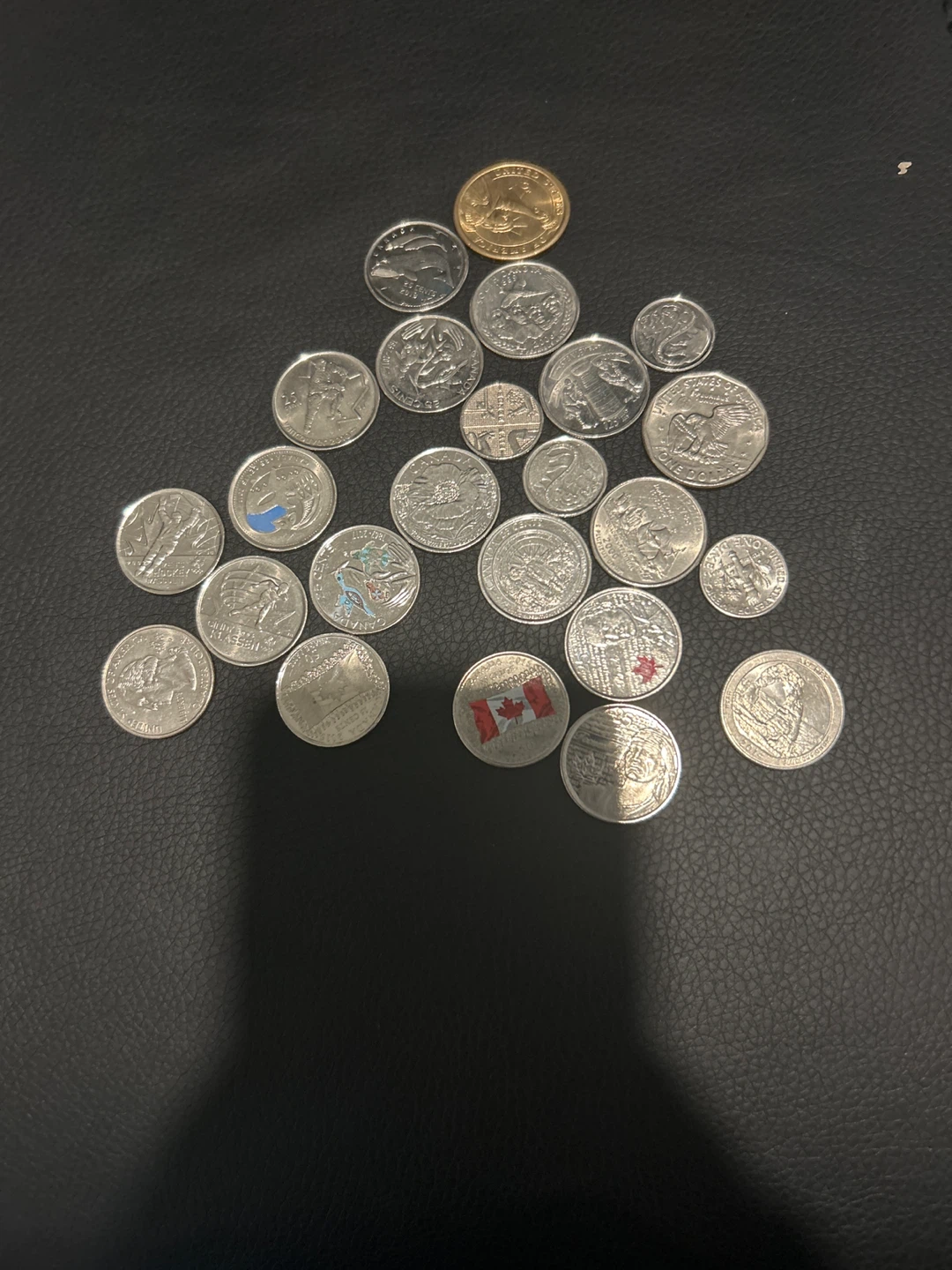 Assorted coins from Canadian money to American