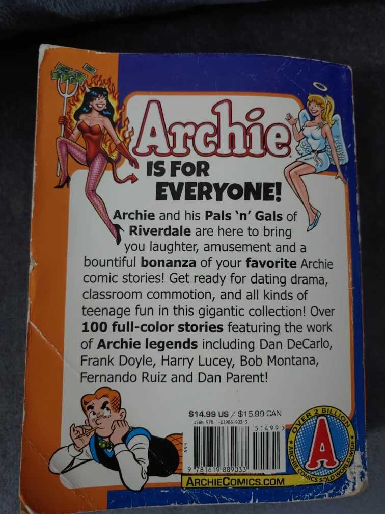 Selling an Archie 1000 Page Comics Bonanza! This book is filled with your favourite Archie comic stories. Get ready for dating drama and classroom commotion. It features over 100 full-colour stories with Archie legends like Dan DeCarlo, Frank Doyle, Harry Lucey, Bob Montana, Fernando Ruiz and Dan Parent
