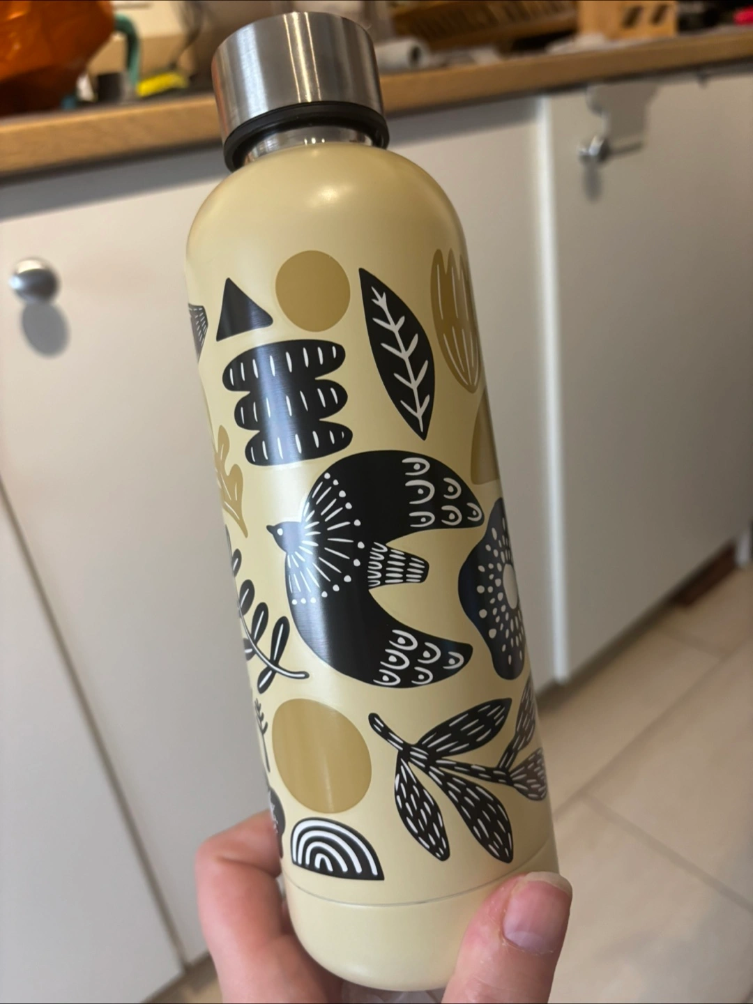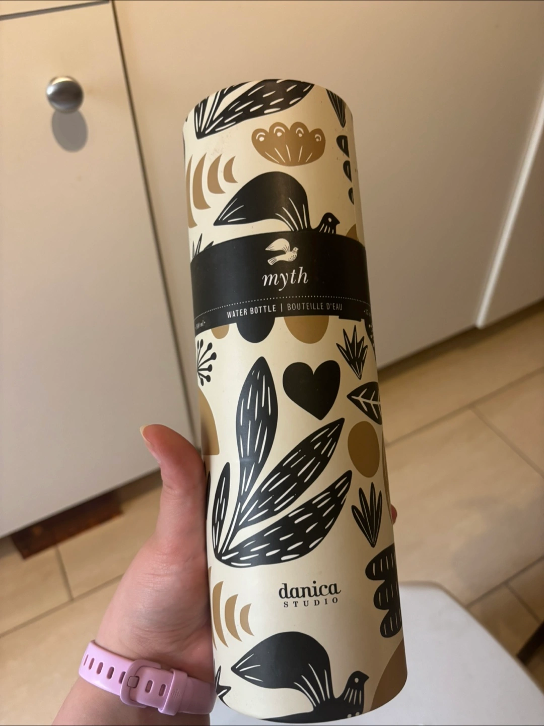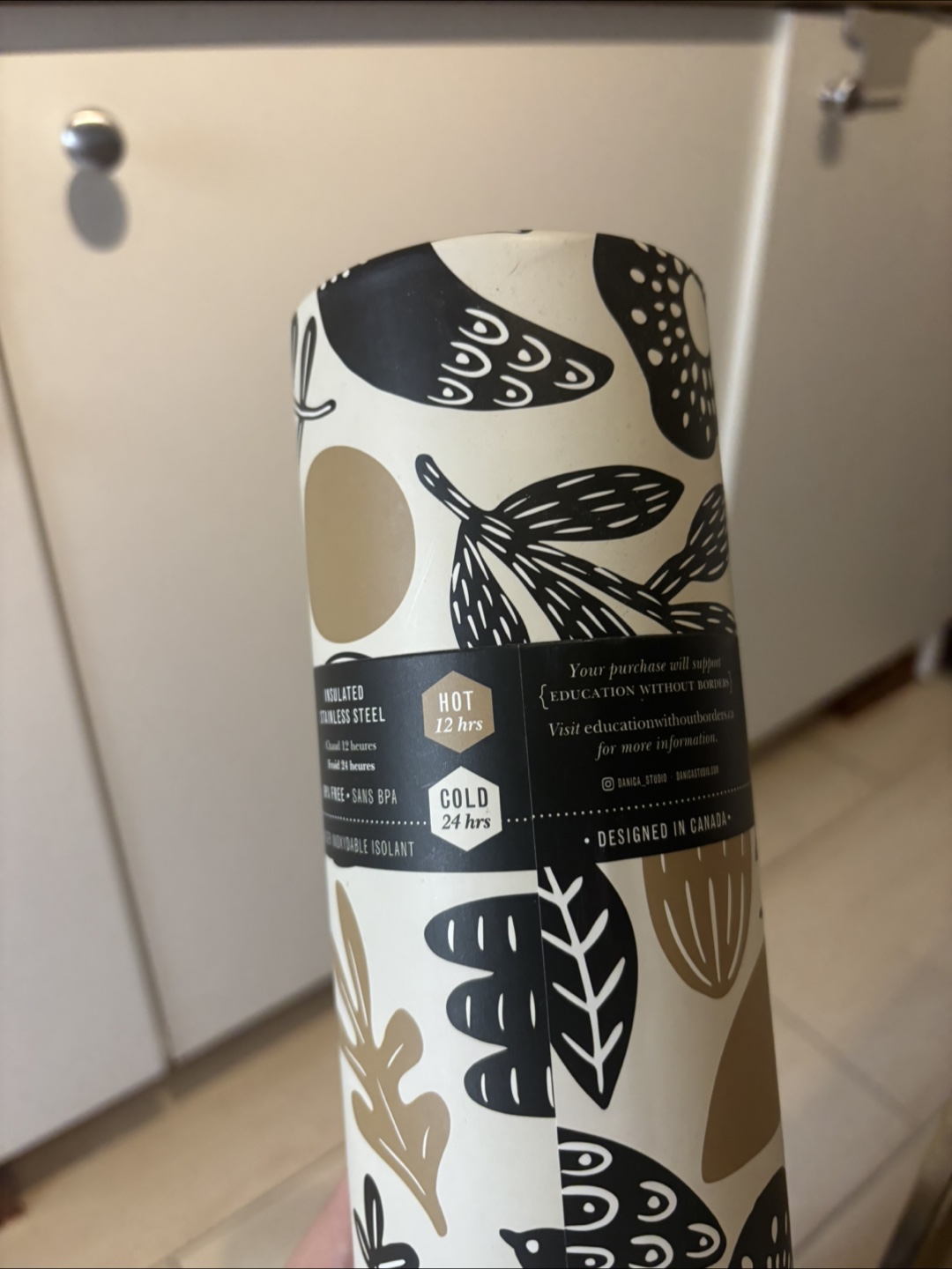 Keep your drinks hot or cold with this Danica Studio water bottle! It's insulated stainless steel and keeps liquids hot for 12 hours and cold for 24 hours. It's also BPA-free. Designed in Canada!