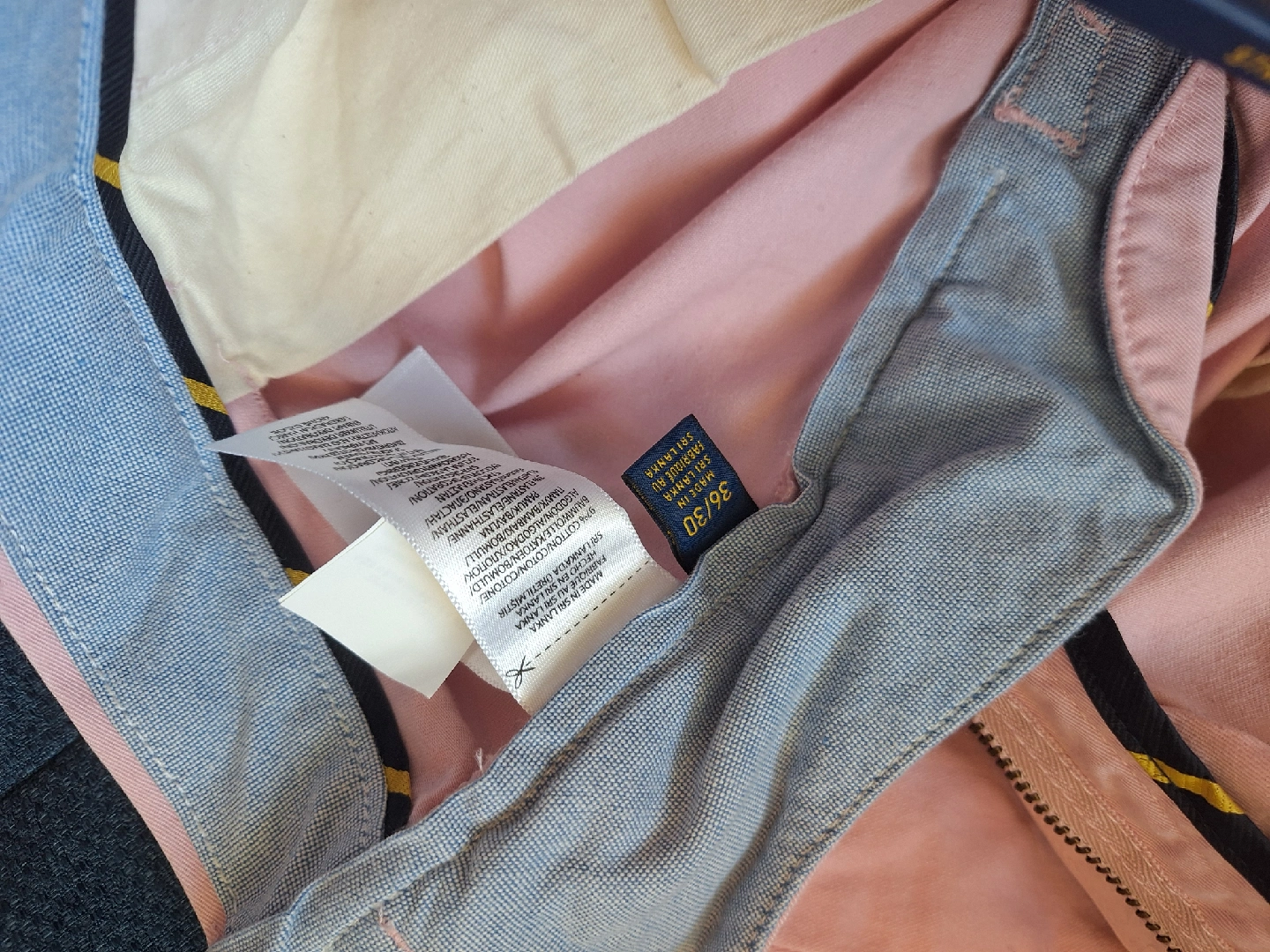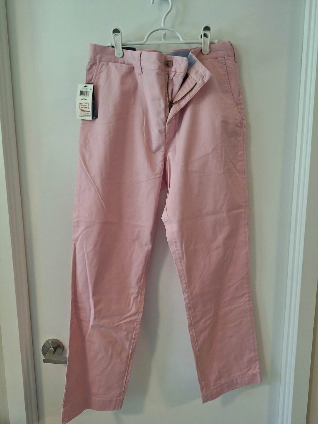 These are a brand new pair of Ralph Lauren Polo pants! They are a straight fit and size 36x30. The colour is a nice light pink, perfect for spring or summer. Brand new with tags still on.