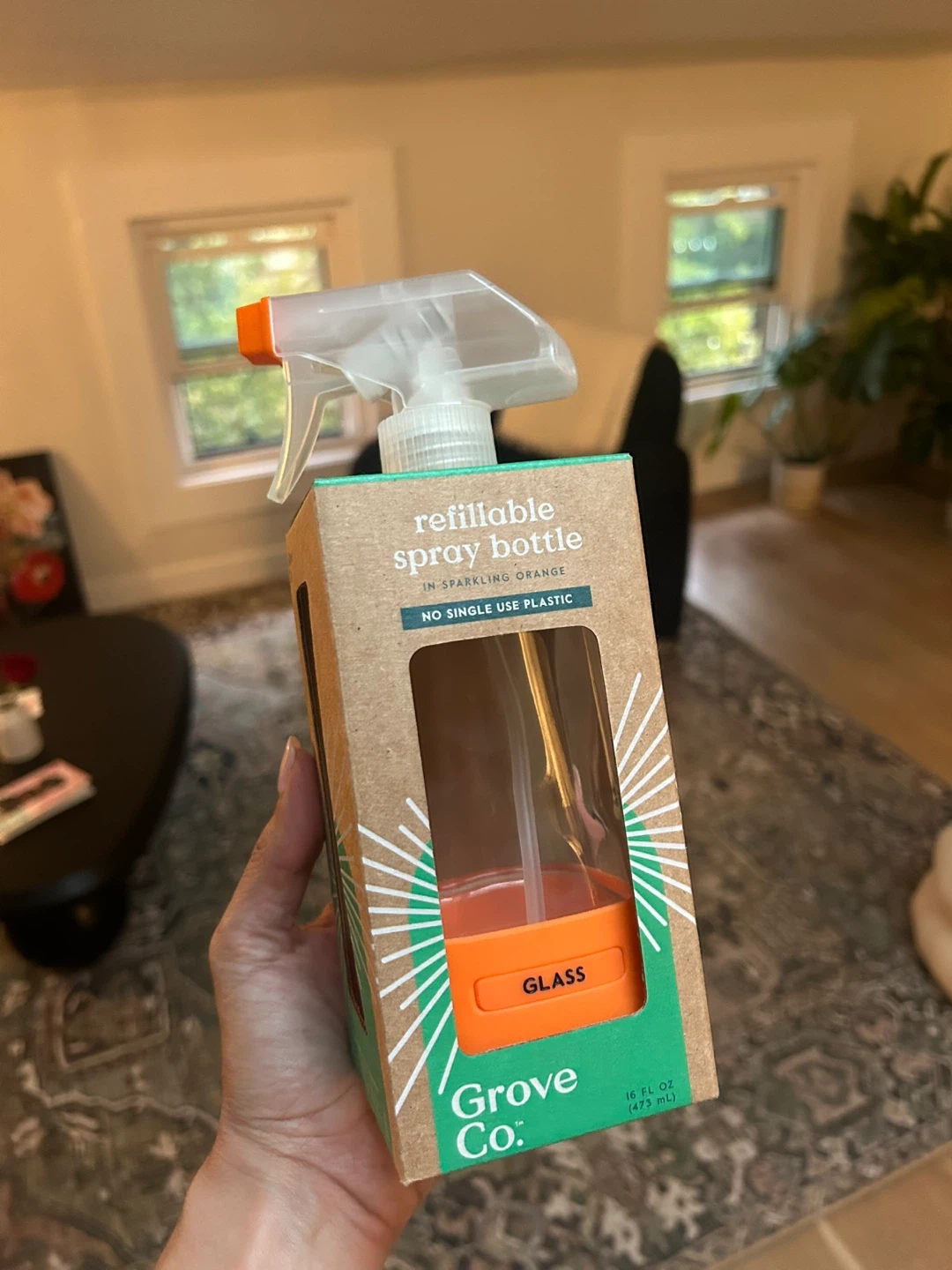 Selling a Grove Co. refillable spray bottle in sparkling orange! It's a 16 fl oz (473 mL) bottle designed with no single-use plastic. Perfect for your cleaning needs!