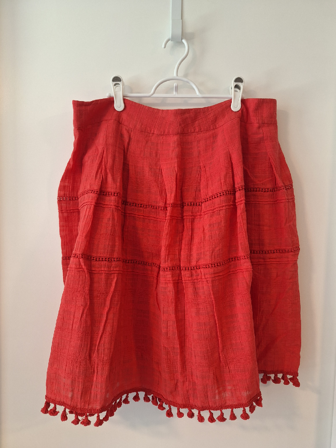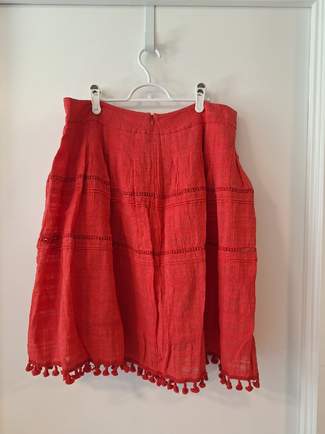 Selling a cute red skirt from Talbots! It's a size 16 and in great condition. The skirt has a fun tassel detail along the bottom, adding a bit of flair to your outfit. Skirt is lined.