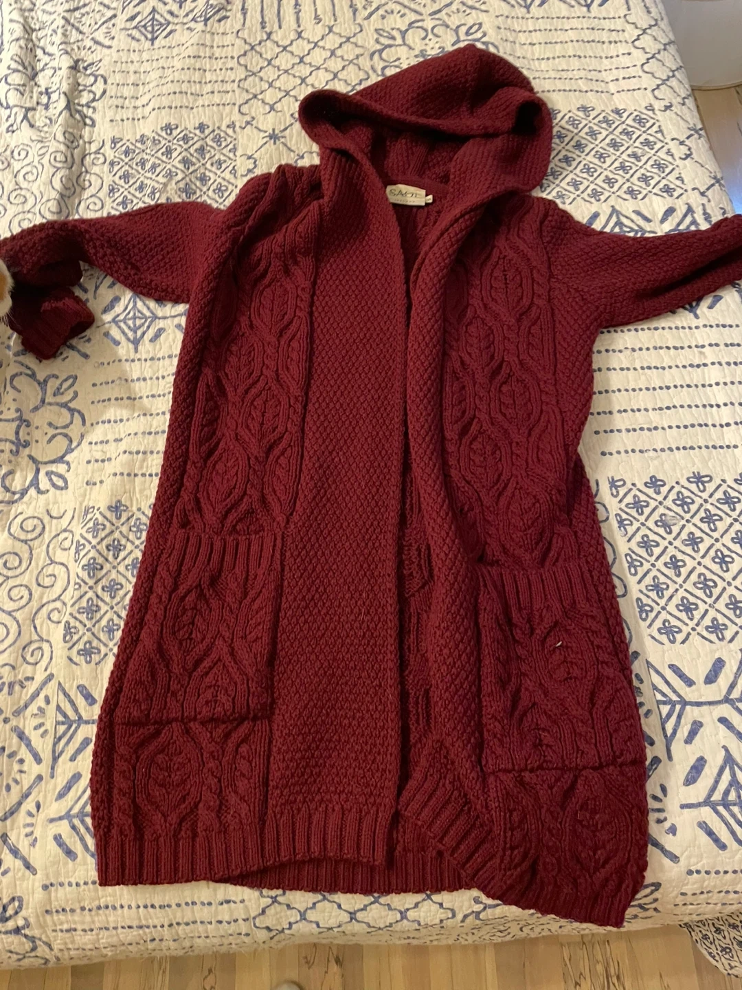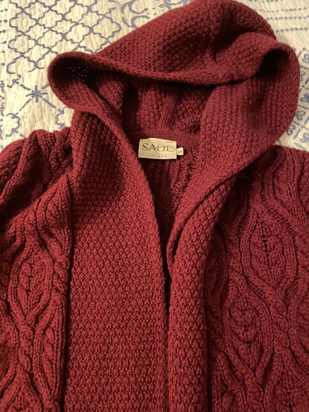 Cozy up in this beautiful Saol Ireland waterfall cardigan! It's made of 100% merino wool and features a lovely hooded design. It's a size small and in great condition. Machine washable at max 30 degrees. Perfect for adding a touch of warmth and style to any outfit!