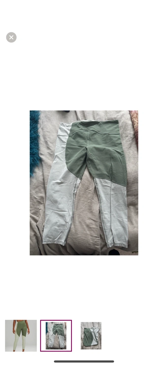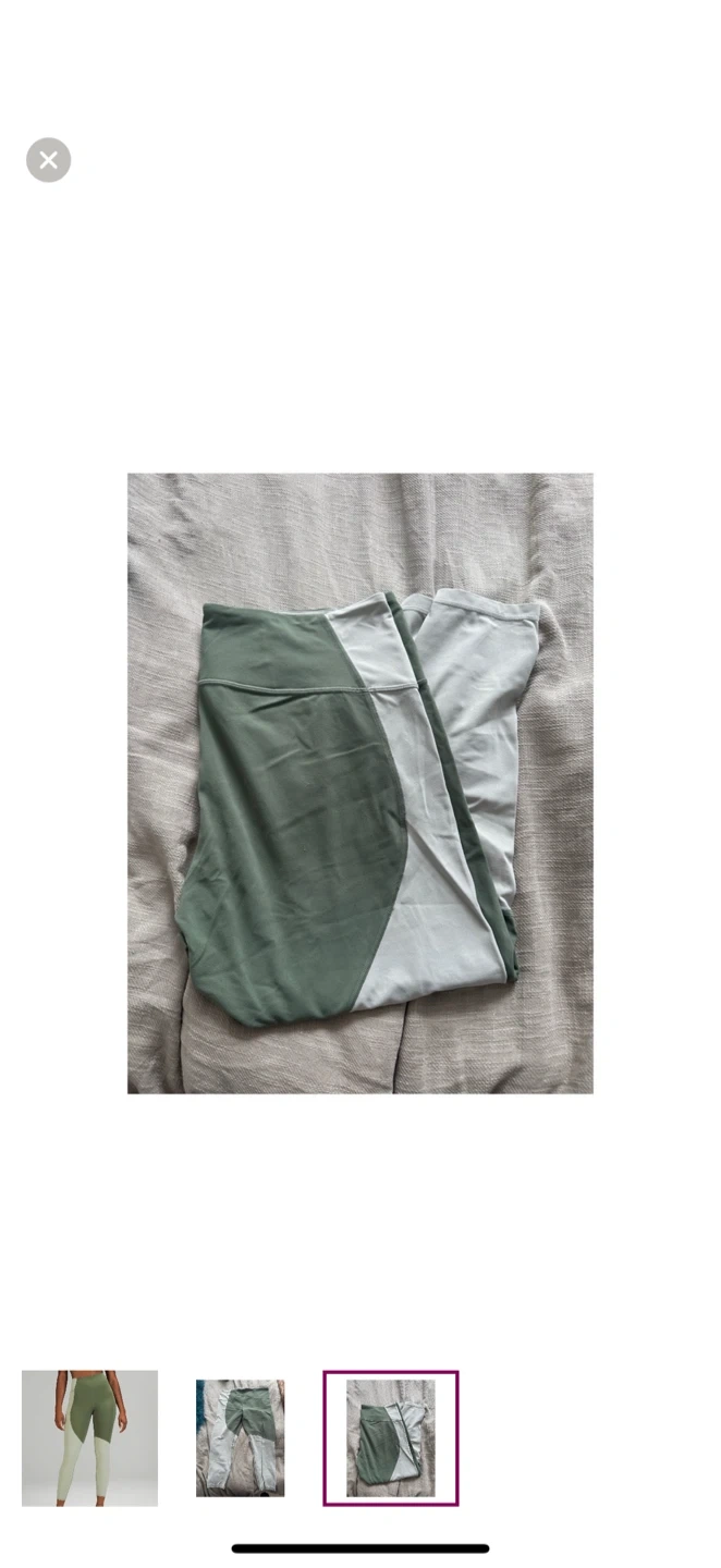 Worn a few times. Green Twill/Green Fern colour combo. Super soft, size 14. Matching sports bra on my profile.