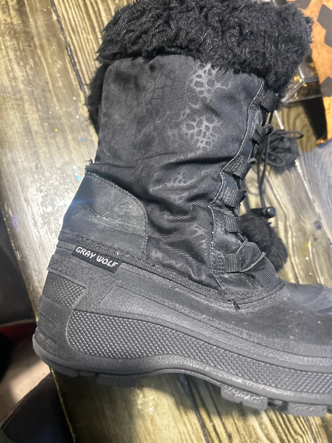 Cozy black winter boots from Gray Wolf, perfect for keeping your feet warm and dry during the snowy season! Gently worn