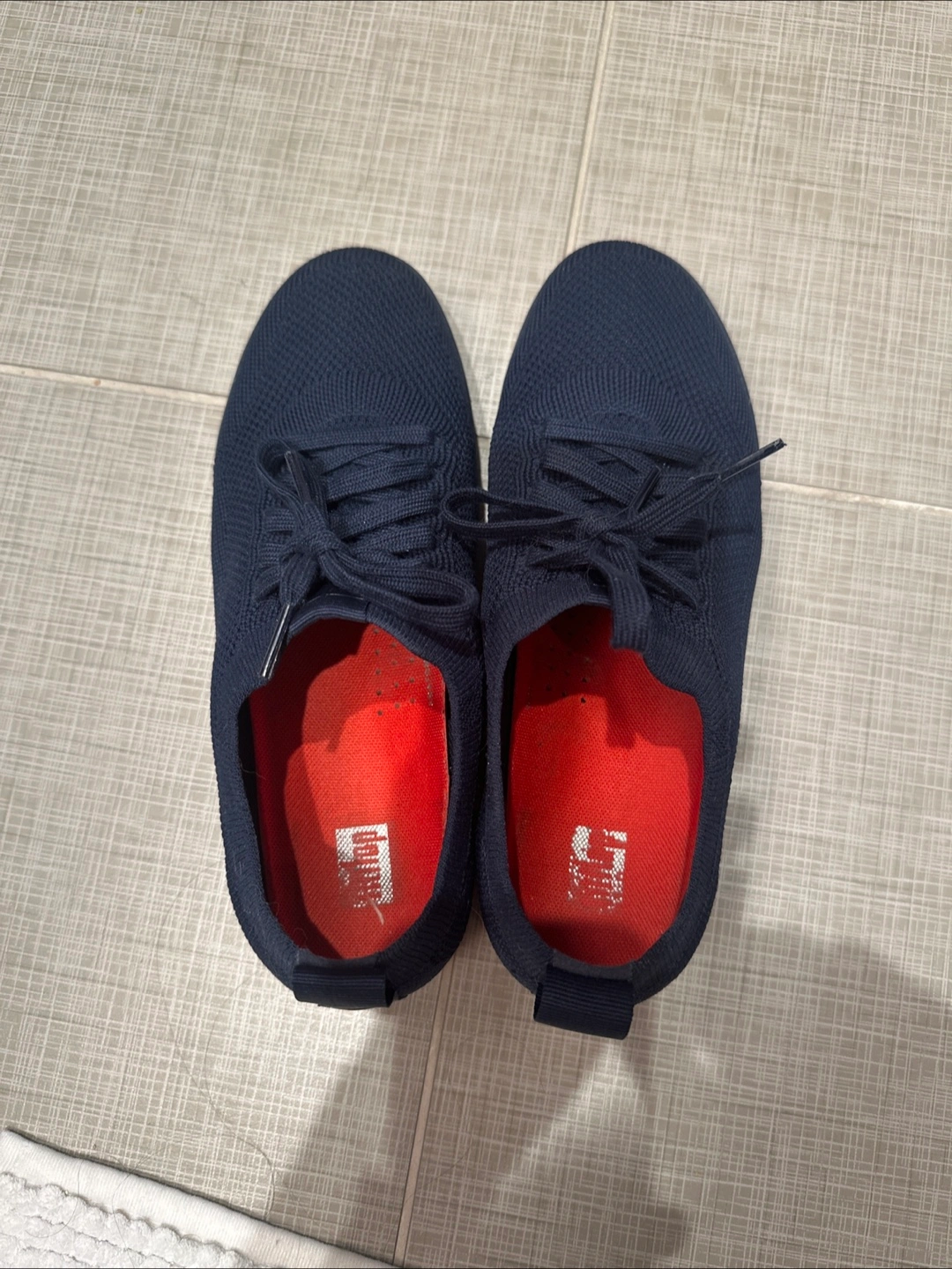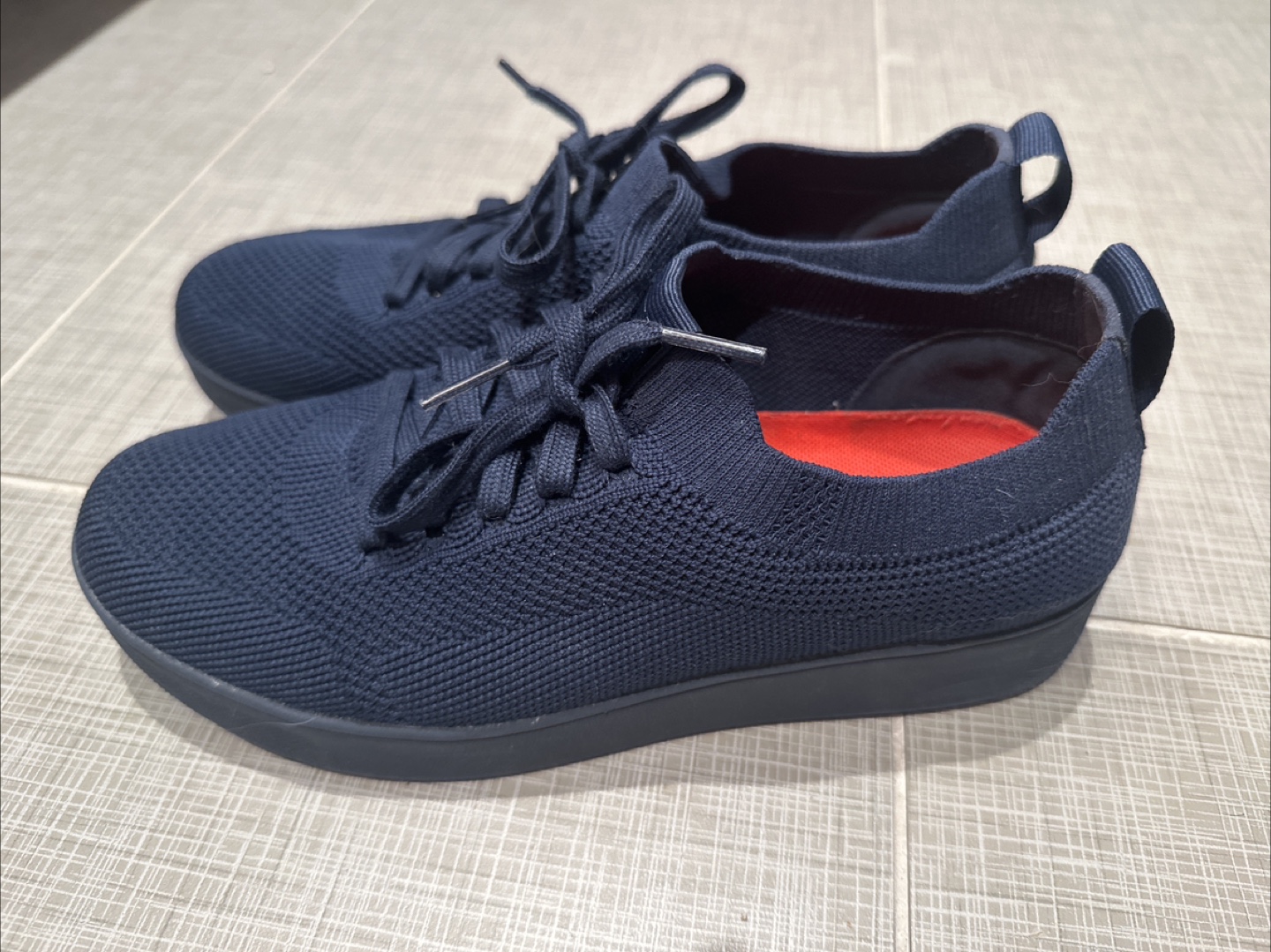 Selling a pair of FitFlop knit sneakers in navy blue. They're in great shape and super comfy for everyday wear! The knit material is really breathable, and the design is simple and stylish. Perfect for running errands or just kicking around town!