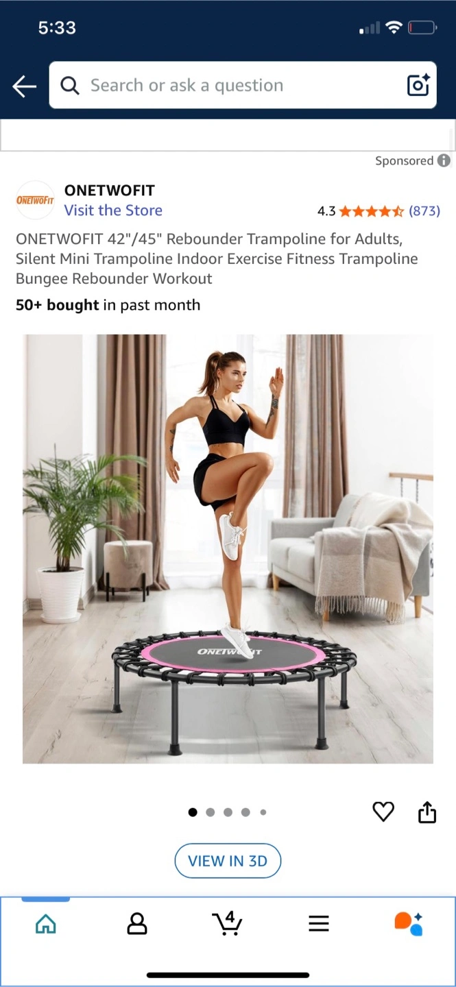 HEAVY DUTY CONSTRUCTION - ONETWOFIT Fitness trampoline made of heavy steel, passes 3000 continuous jump experiments. Make sure you can jump for the long term. 42" frame size gives you jumping more freedom.