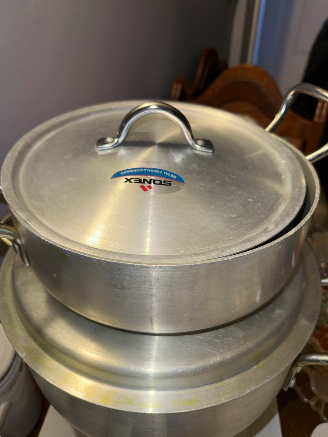 Selling a Sonex metal finish cookware pot, complete with its lid. It's in good condition and ready for your kitchen!