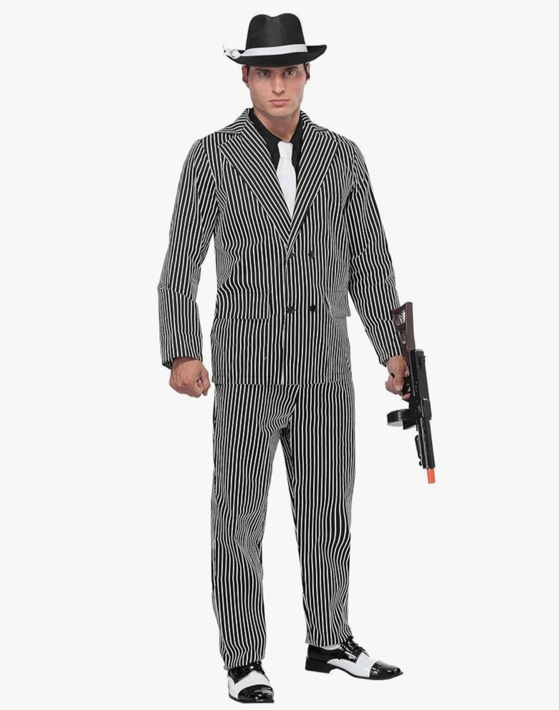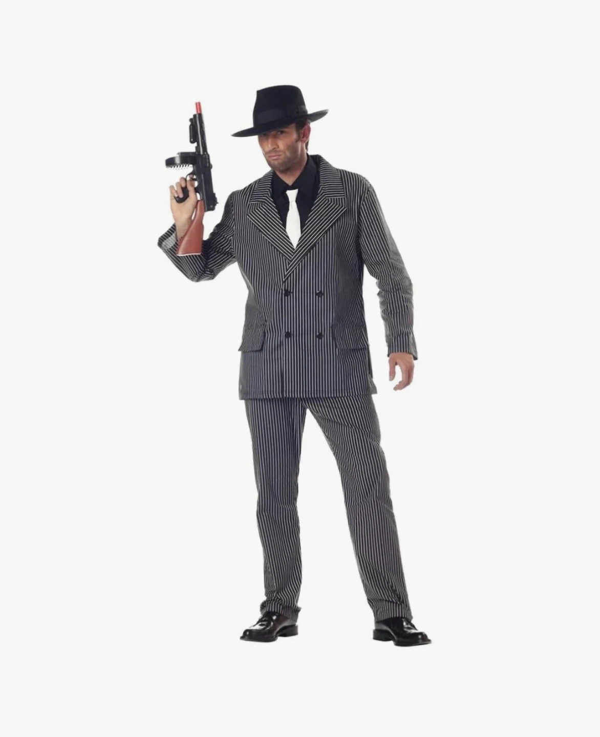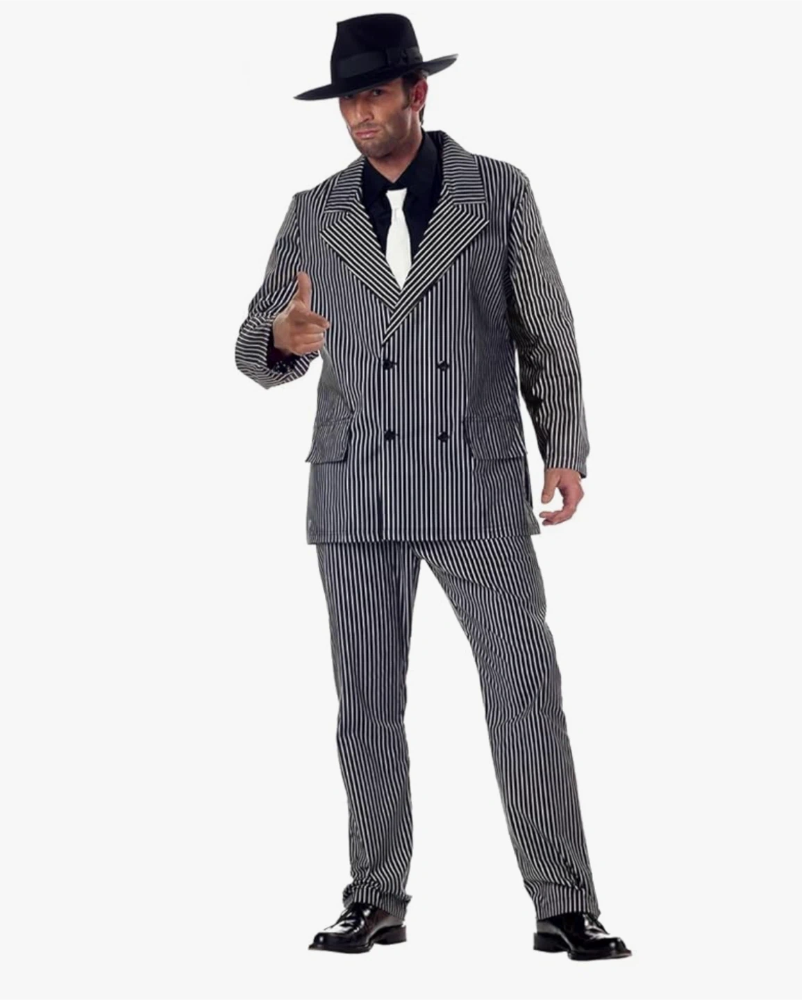 Make your way back to the 1920's where the mobsters and gangsters ruled the streets! Join in some underworld antics in this men's roaring 20's gangster fancy dress costume by California Costumes. The perfect mob man pinstriped suit gangster costume for your next 1920's or Great Gatsby themed dress up party.