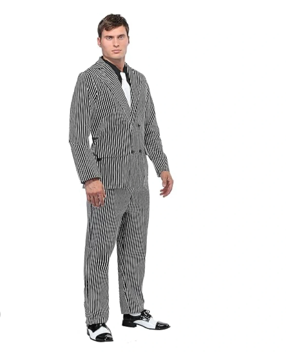 * Includes:: Pinstriped Double-breasted Jacket, Pants, Dickey with attached tie