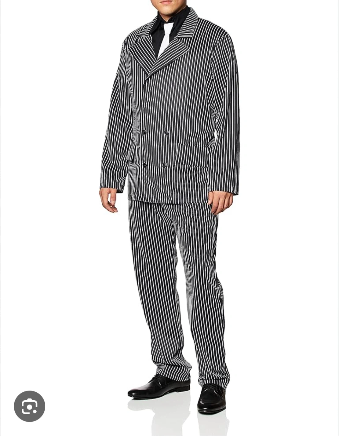 If you see this ad, it's still available! It is a pinstriped gangster suit costume. It comes with a double-breasted jacket and matching pants. Perfect for Halloween or a themed party! Remember to check out my other ads. Discount available for multiple purchases!