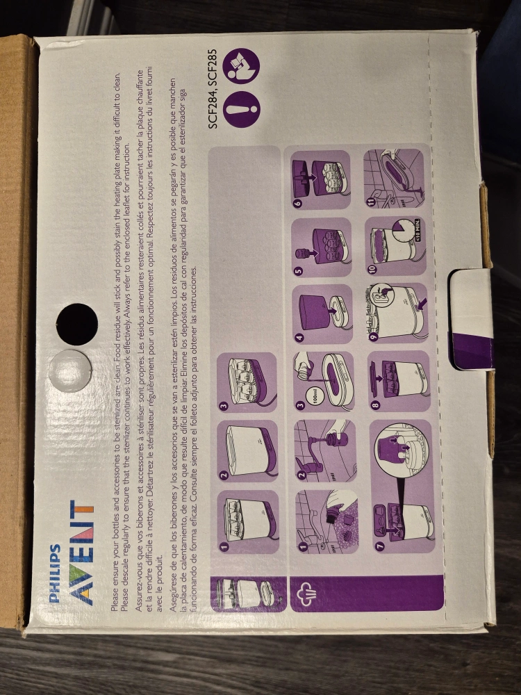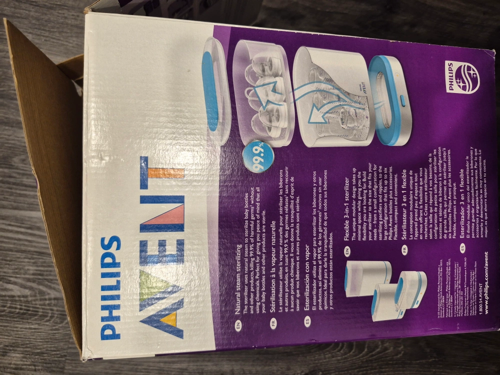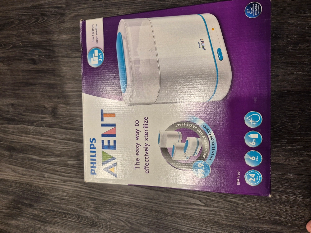 Selling a Philips Avent electric steam sterilizer! It's been very loved and comes with the box and all the original components. This sterilizer is super convenient for keeping baby bottles and accessories clean and germ-free. It's the SCF284/SCF285 model.