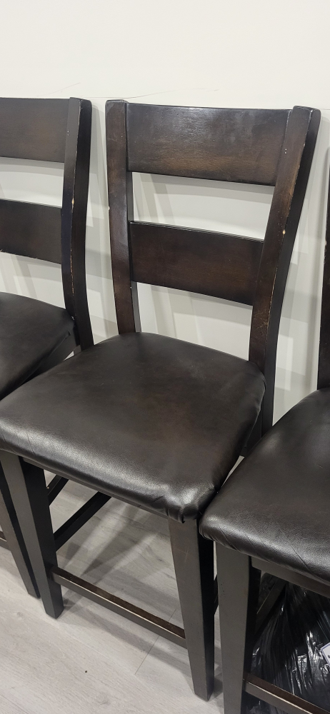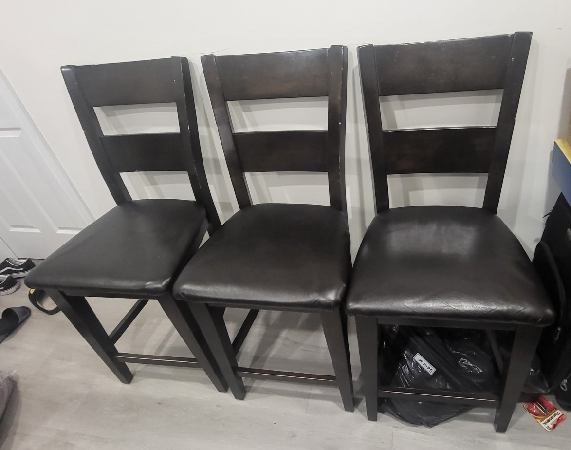 I've got 4 tall chairs that could be used at a kitchen island or a bar . I moved and no longer need them. There are a few nicks in them as shown in the pictures. Also, some are missing screws. They are very sturdy chairs and have a lot of life in them. I'm selling $40. for all 4.