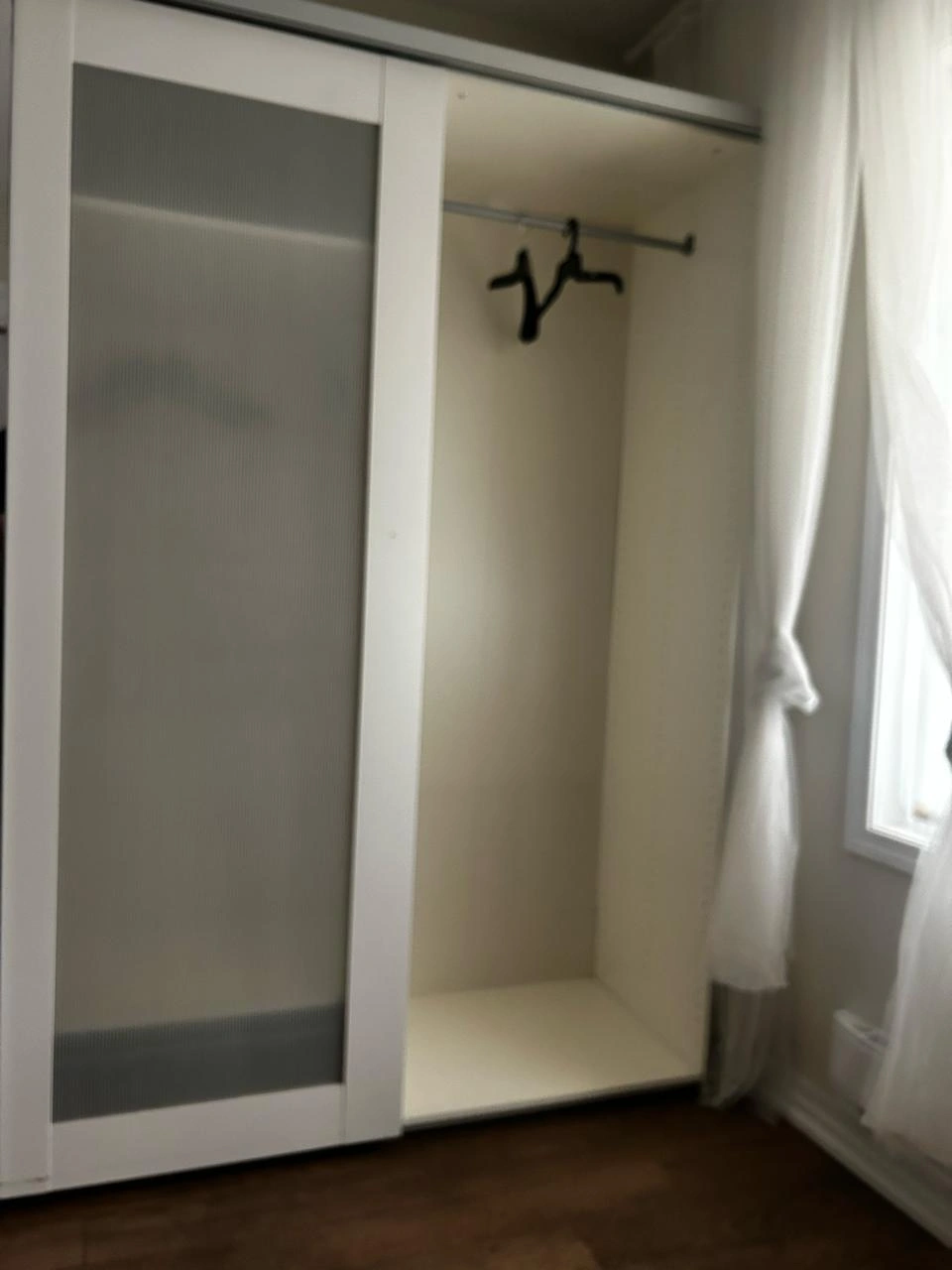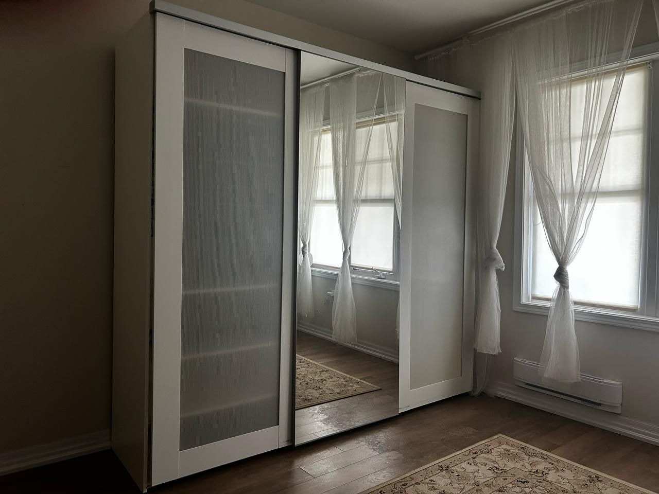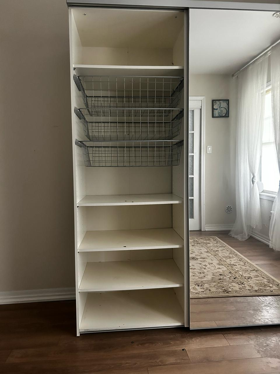 Selling a spacious IKEA PAX wardrobe! It comes with sliding doors, which are great for saving space. Inside, there are shelves and a hanging rod for all your storage needs. It’s in good condition and ready to organize your clothes and belongings