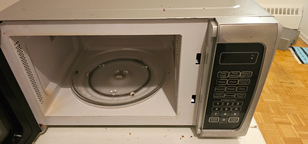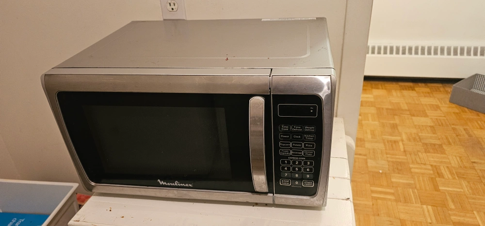 Selling a used Moulinex microwave. It's got some signs of wear, but it's still functional.