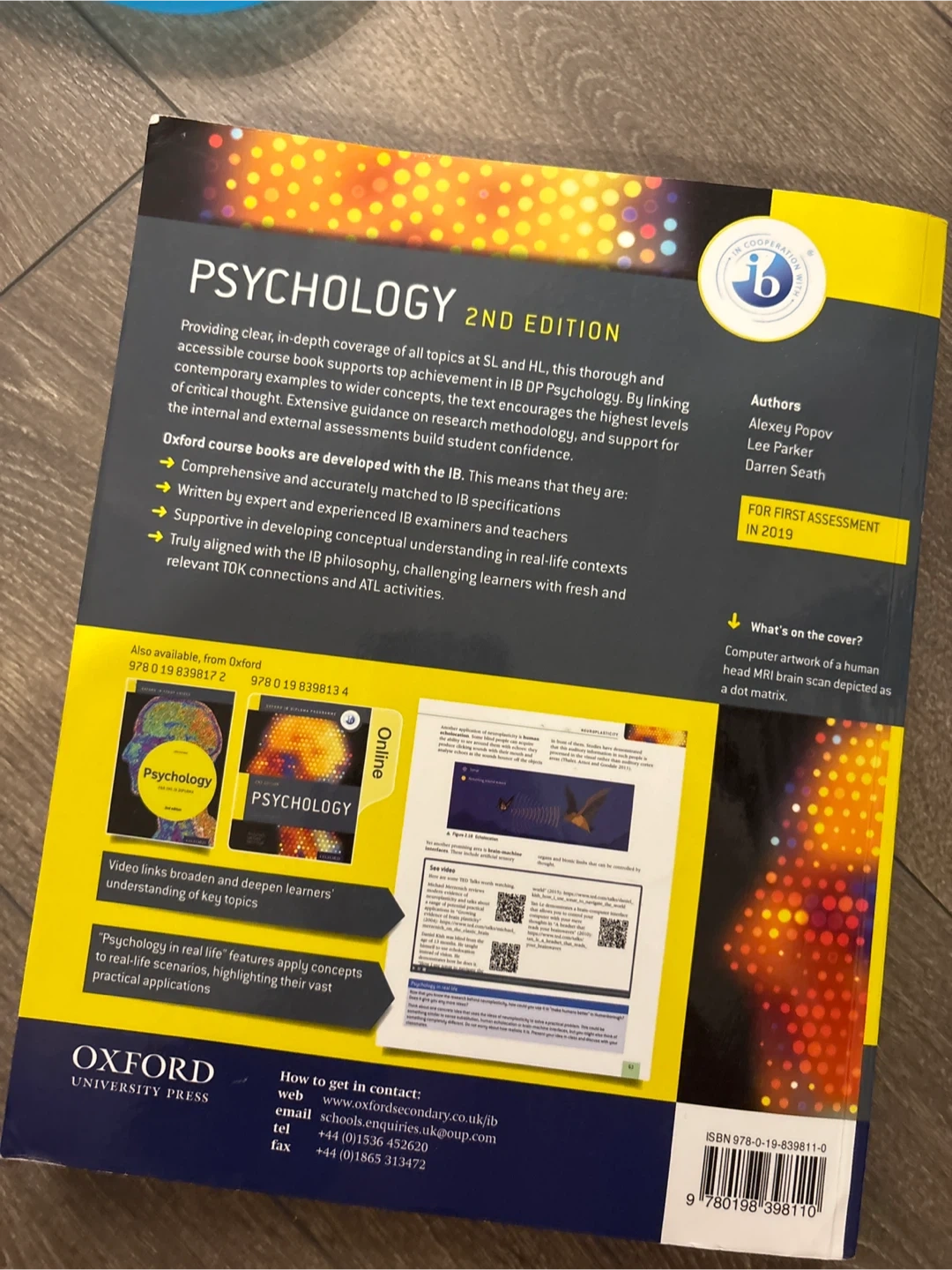 Giving away the Oxford IB Diploma Programme Psychology 2nd Edition textbook. It provides clear, in-depth coverage of all topics at SL and HL. This thorough and accessible course book supports achievement in IB DP Psychology by linking contemporary examples to wider concepts, the text encourages the higher levels of critical thinking