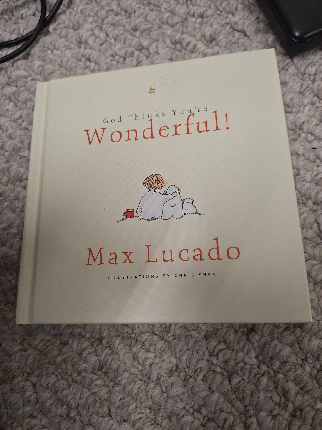 A sweet book by Max Lucado titled 'God Thinks You're Wonderful!' with illustrations by Chris Shea. Perfect for children!