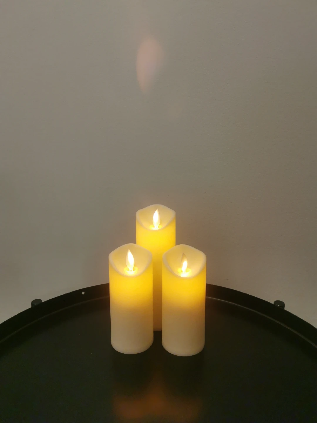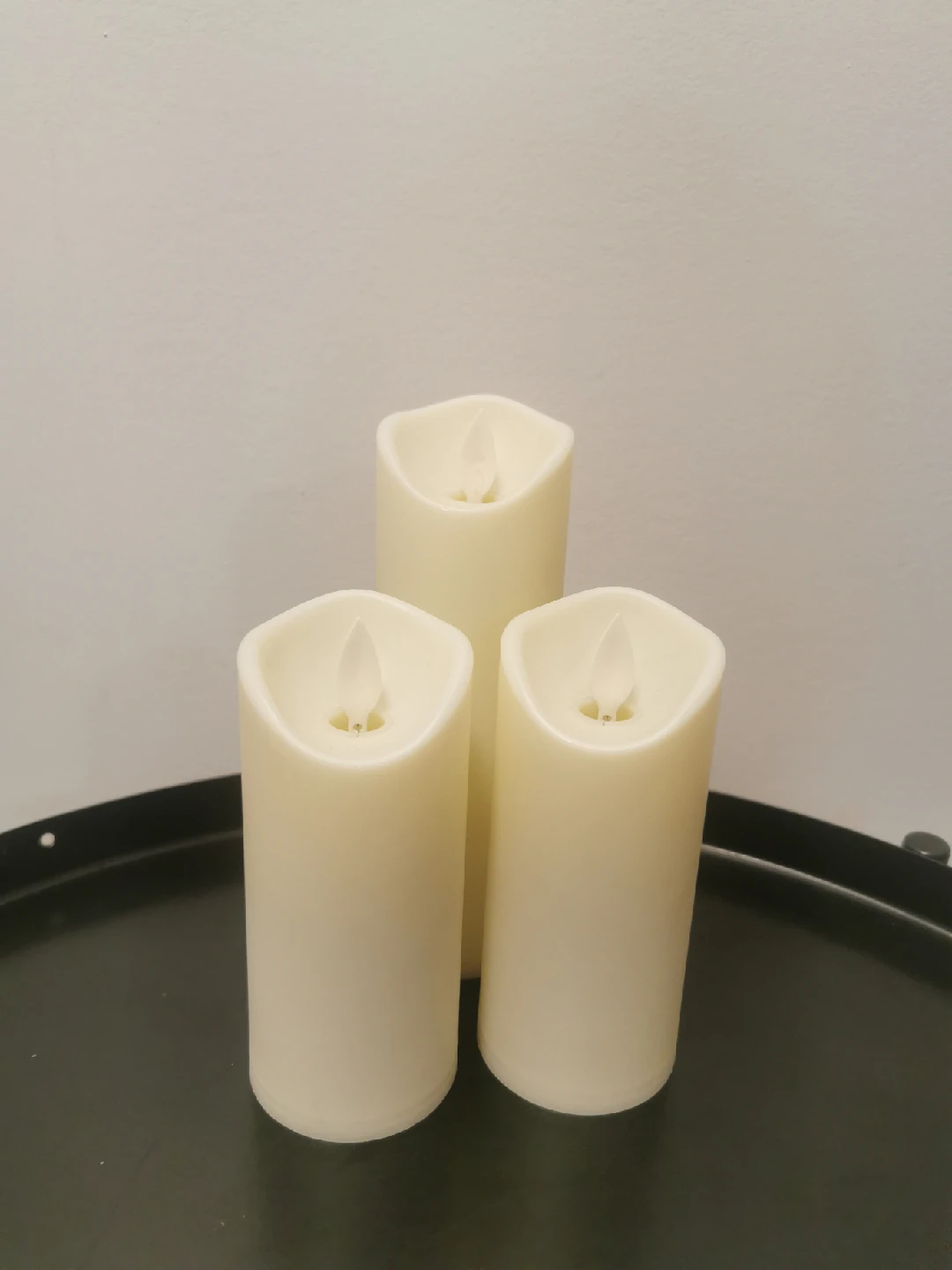 Selling a set of three flameless candles! They give a warm glow without the worry of an open flame. Perfect for creating a cozy atmosphere in any room.