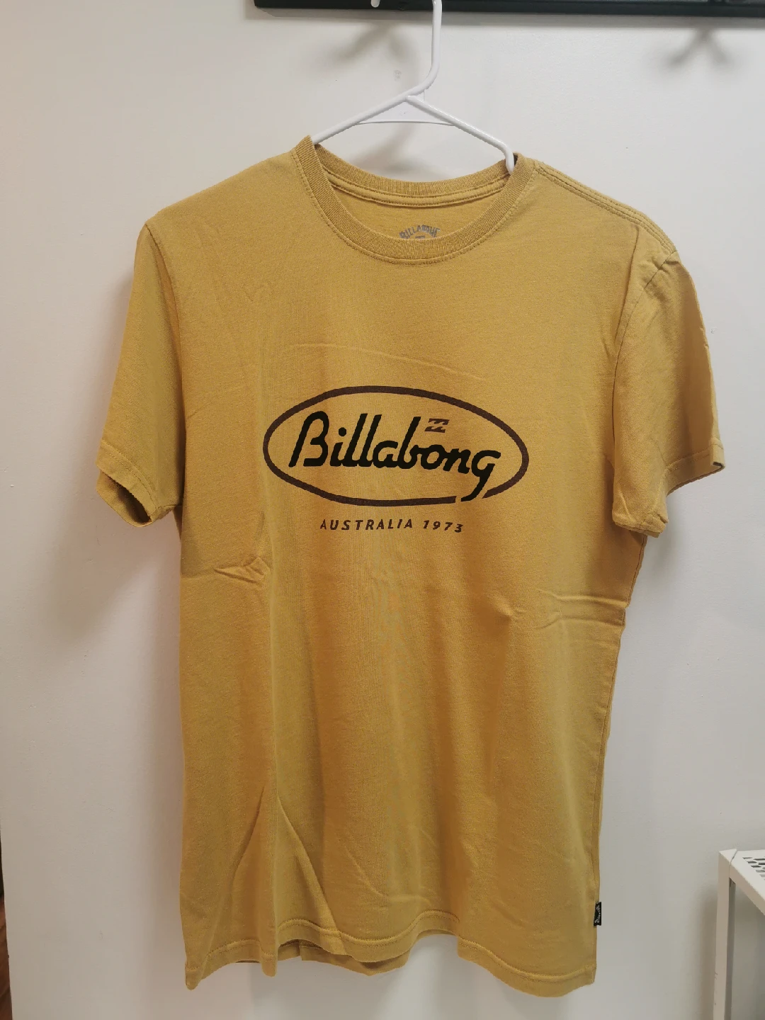 Selling a Billabong t-shirt in size medium! The shirt is a mustard yellow colour with the Billabong logo on the front. The logo says Billabong Australia 1973. It's in great condition and ready for a new home