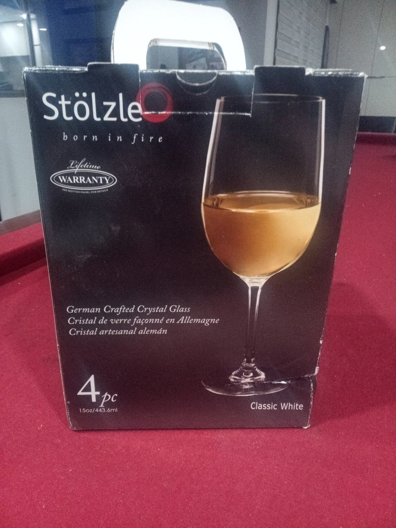 Selling a set of four Stölzle Classic White wine glasses! These are German crafted crystal glasses and come in the original box. Each glass holds 15oz/443.6ml. Perfect for your next dinner party or a cozy night in.