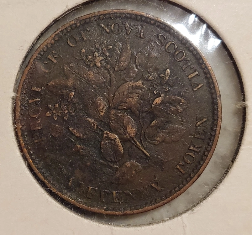 Selling an 1856 Nova Scotia half copper penny token.