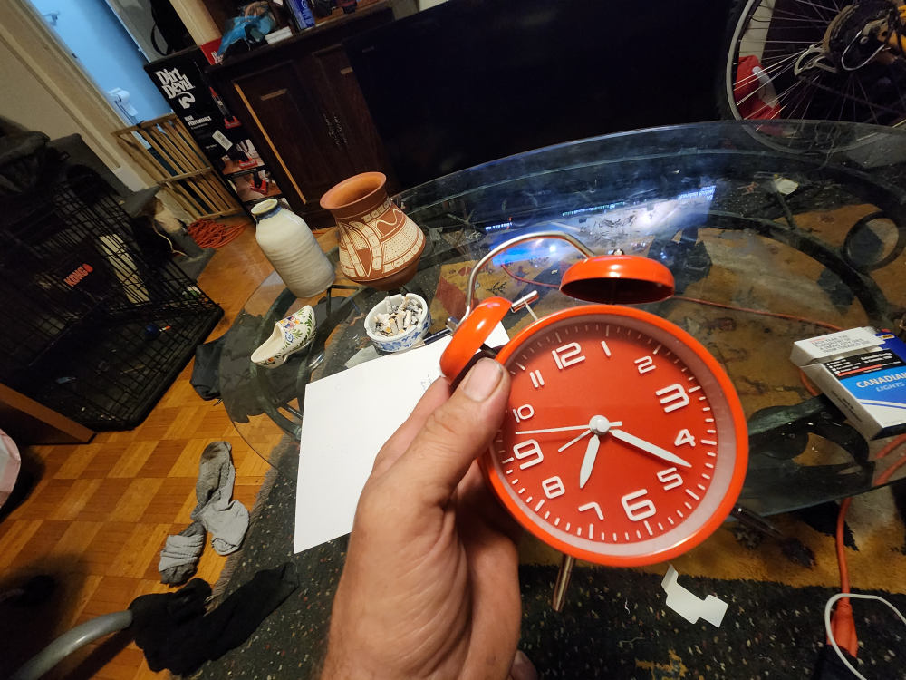 Selling a red twin bell alarm clock! It's in good condition and ready to help you wake up on time. A classic and functional addition to any bedside table with light