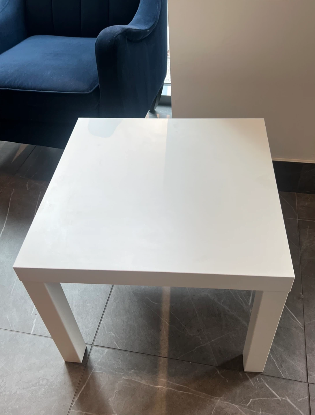 Selling a simple and clean white IKEA Lack side table. It's perfect for small spaces and easy to move around. The 4 wooden legs can also be unscrewed for easy transport.