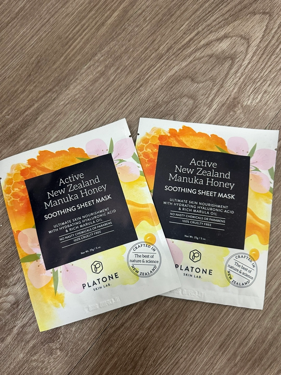 I have two Platone New Zealand Manuka Honey Soothing Sheet Masks for sale! These masks offer ultimate skin nourishment with hydrating hyaluronic acid and rich marula oil. They're crafted with the best of nature and science from New Zealand and are free of nasty chemicals or parabens, plus they're 100% cruelty-free