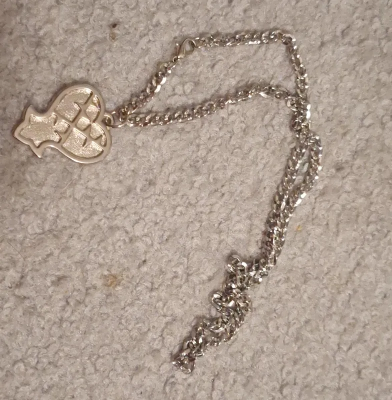 Selling a cute silver-tone necklace with a heart-shaped pendant. It's in great condition and would make a lovely addition to any outfit