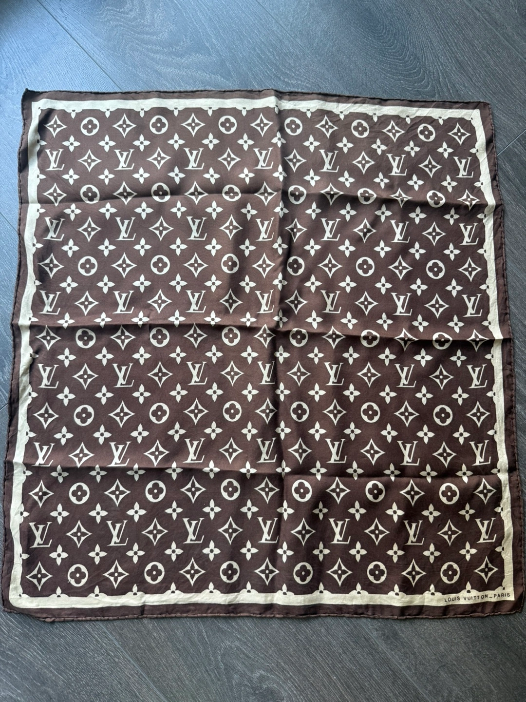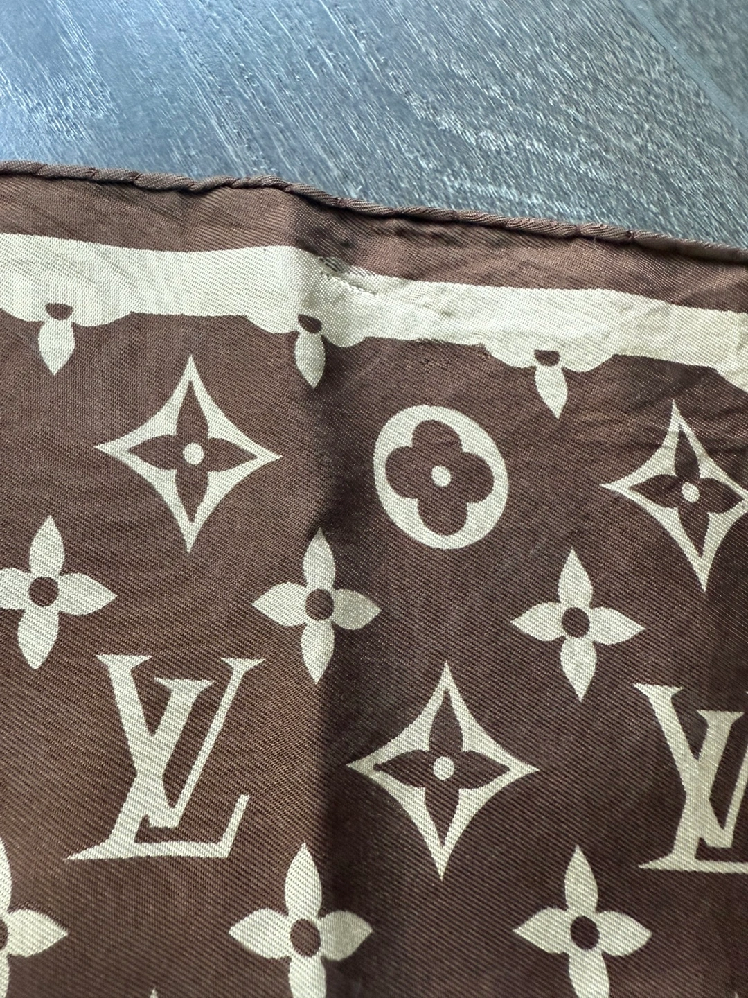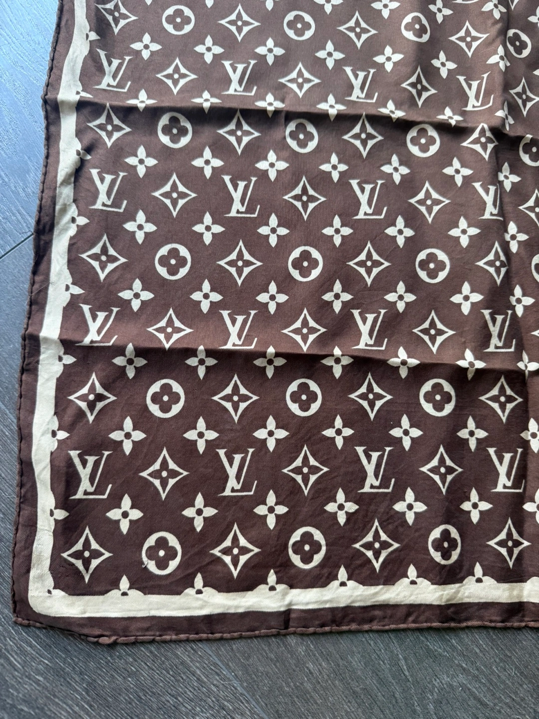 LOUIS VUITTON Vintage Monogram Cream Dark Brown Scarf 55cm