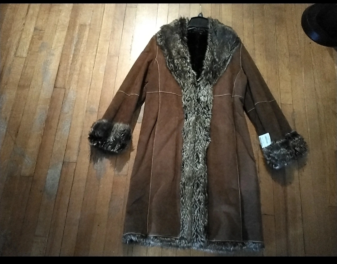 NEW! MARVIN RICHARDS MAXI SUEDE COAT WITH FAUX FUR INTERIOR and EXTERIOR
