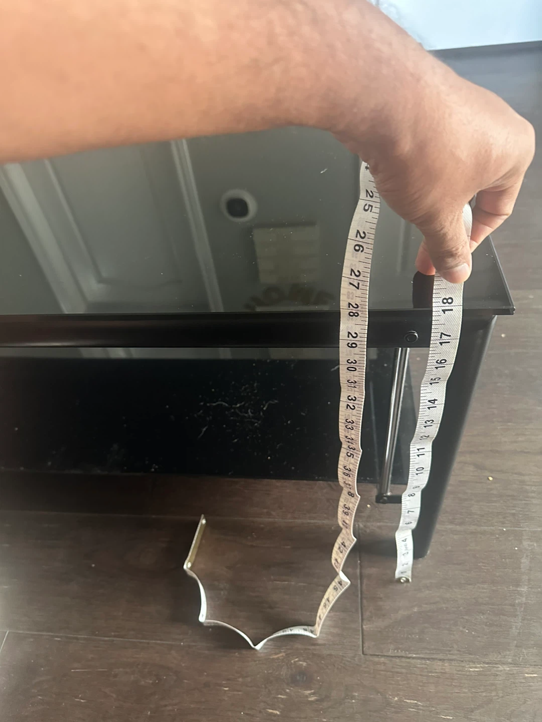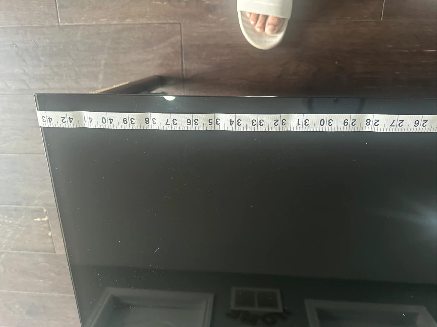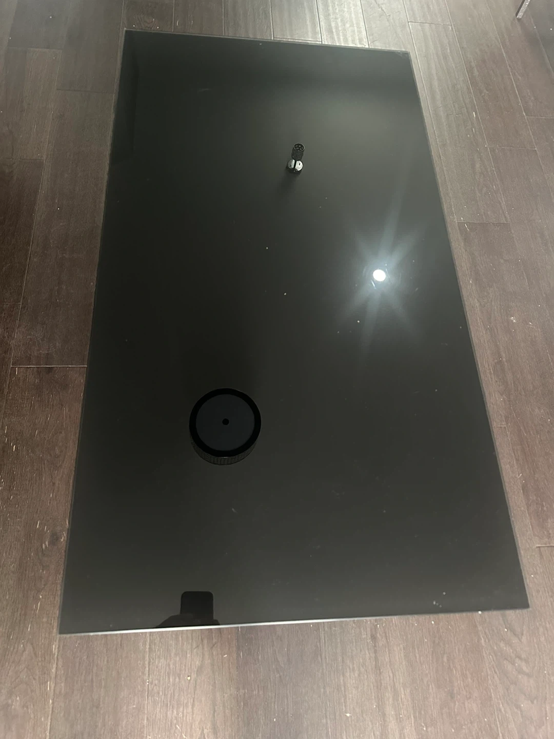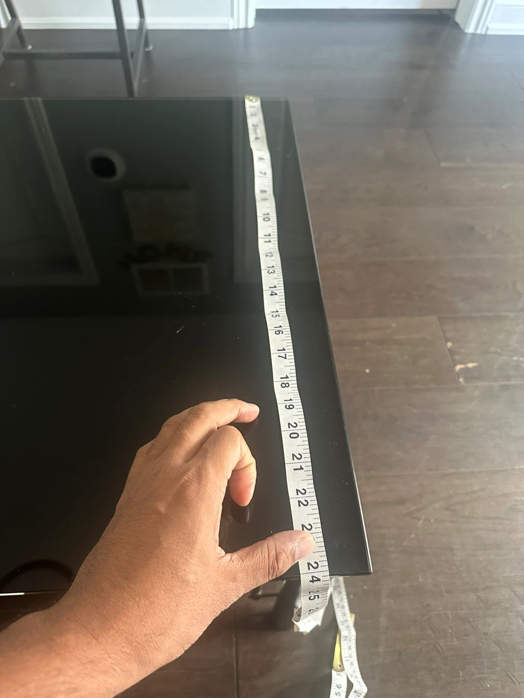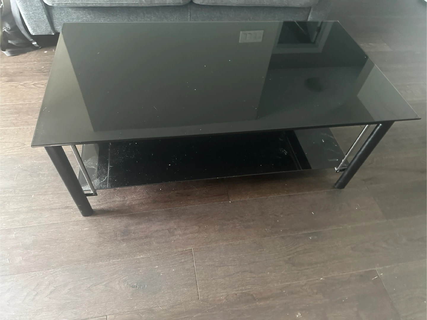 Selling a sleek black glass coffee table! It measures approximately 42 inches in length and 24 inches in width. It's in great shape and would look lovely in any living room