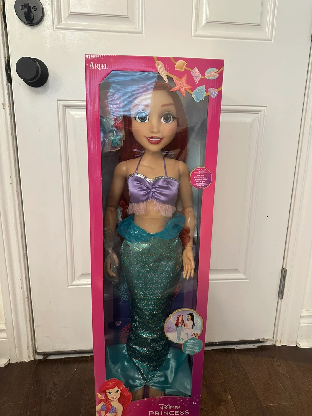 Selling a brand new, in-box Disney Princess Ariel doll! This is the 32-inch version, perfect for any Little Mermaid fan. The box is included and the doll has never been removed. A great gift! Costco has it for 99.99+tax