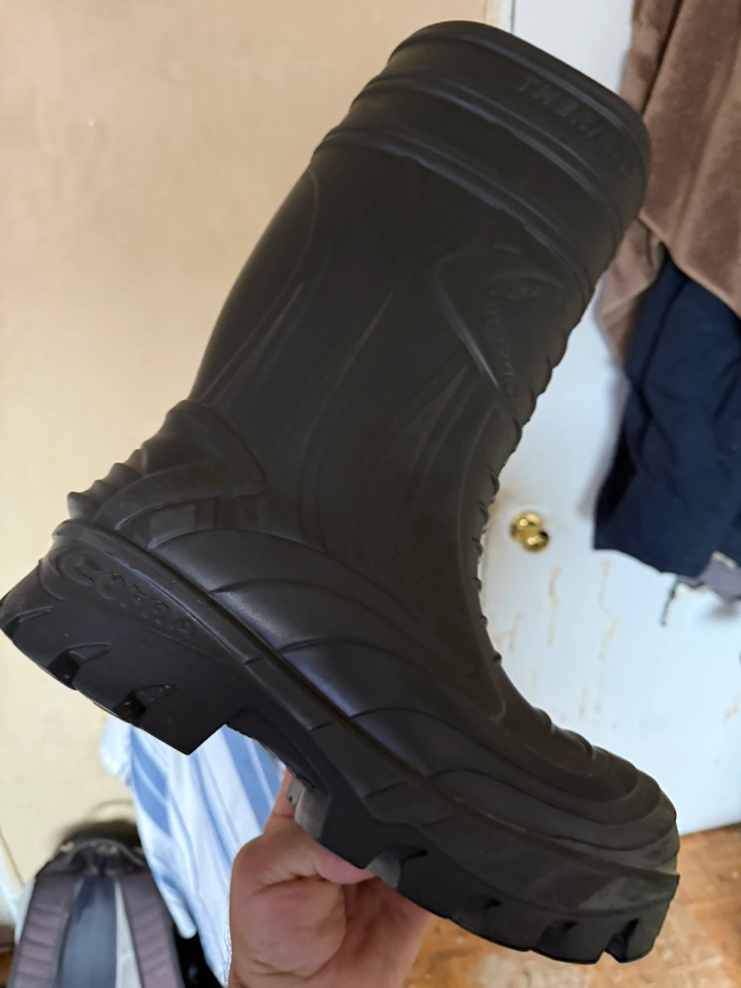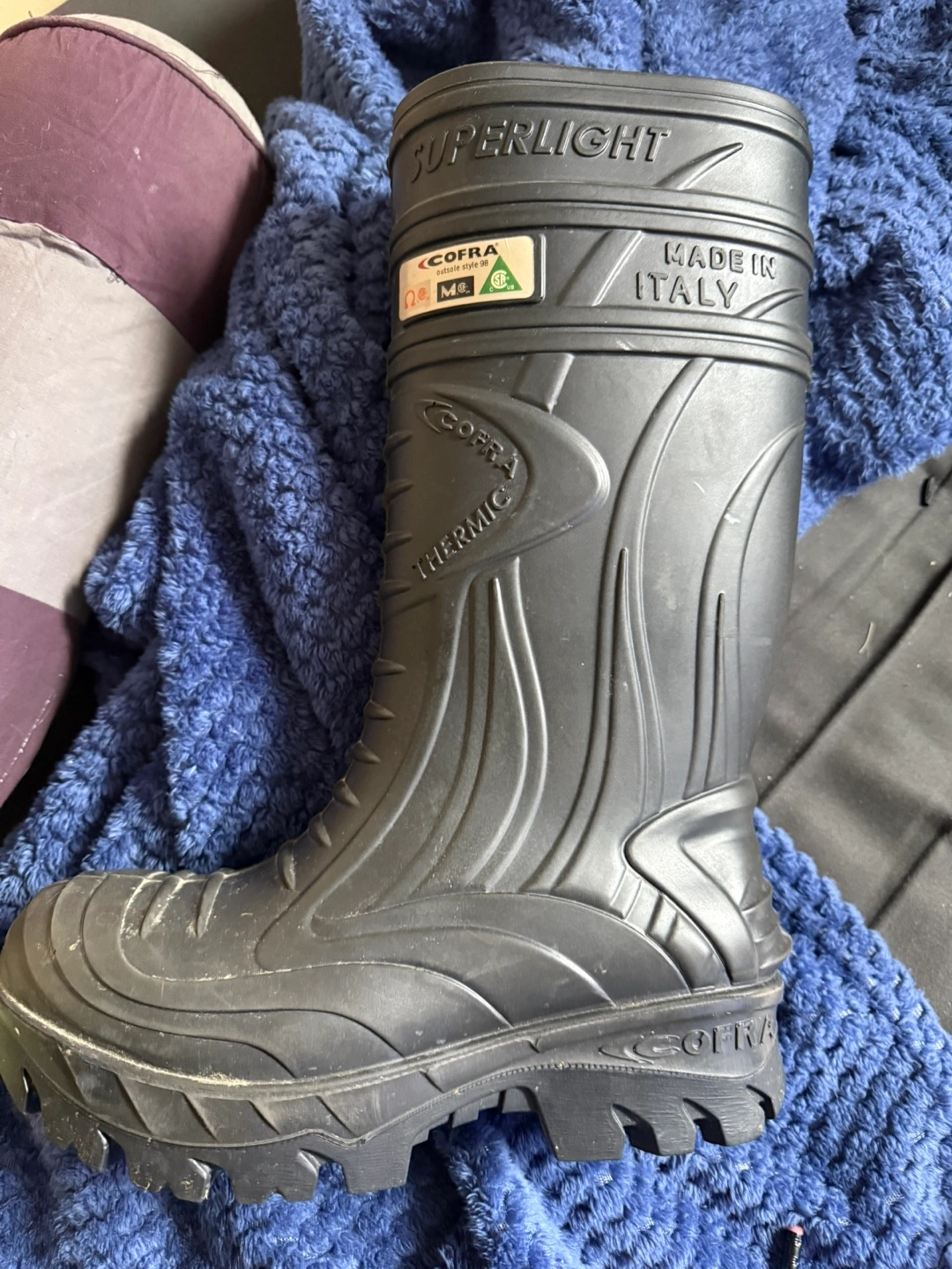 Selling a pair of Cofra Thermic Superlight boots in black! They're a size 10. These boots are oil and fuel resistant, perfect for tough jobs or messy weather