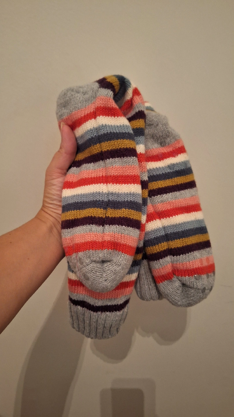 Like new! Indigo reading socks. Warm and snuggly, perfect for winter nights in. Tried on but never worn as I have thicker calves and they didnt work for me.