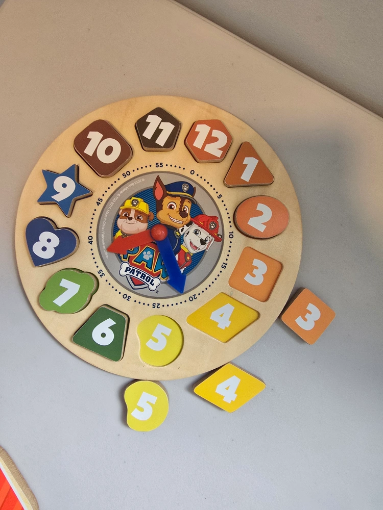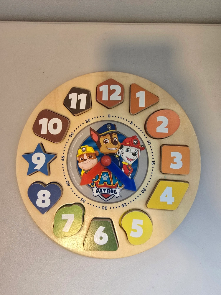 176Pick up in North York Keele St and Wilson Ave area Gently used ▶️ Multi Family Account / Cash only AI: Paw Patrol wooden clock puzzle! It's in great shape and ready for a new home. Perfect for helping little ones learn to tell time and recognize numbers and shapes. The colourful design featuring Paw Patrol characters makes learning fun and engaging