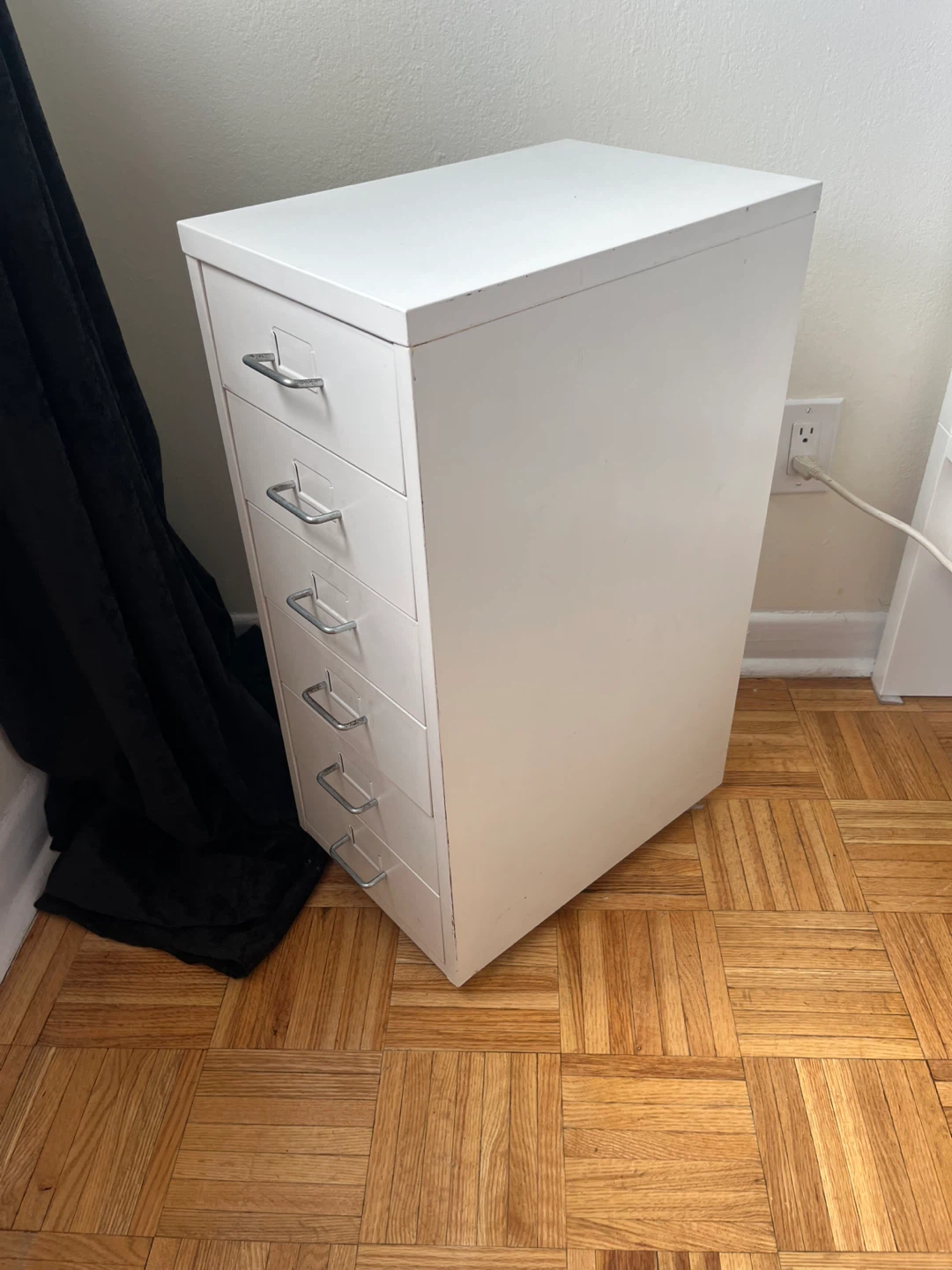 Selling a white metal filing cabinet with 6 drawers! It's perfect for organizing your documents or storing various items. The cabinet is in good condition and ready to use. Great for a home office or any space needing extra storage