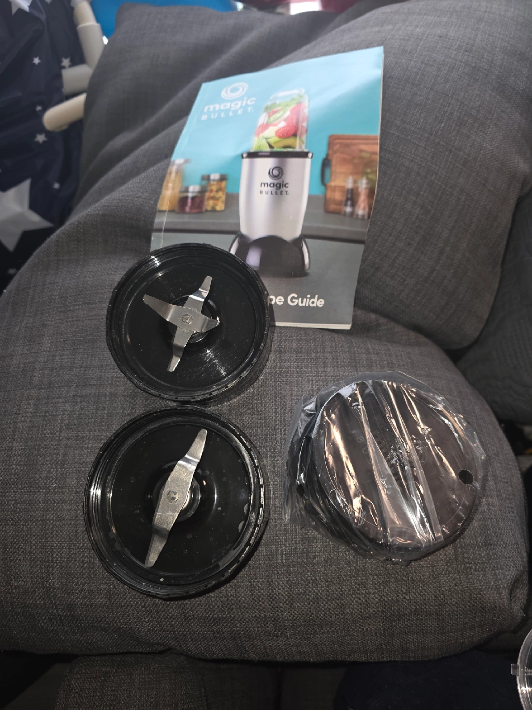 Selling a Magic Bullet blender set! It comes with the blender base, multiple cups, and blades. Perfect for making smoothies and quick meals
