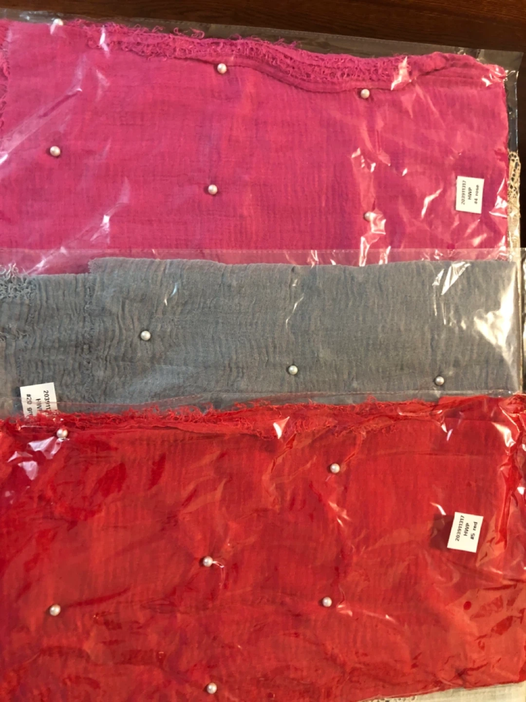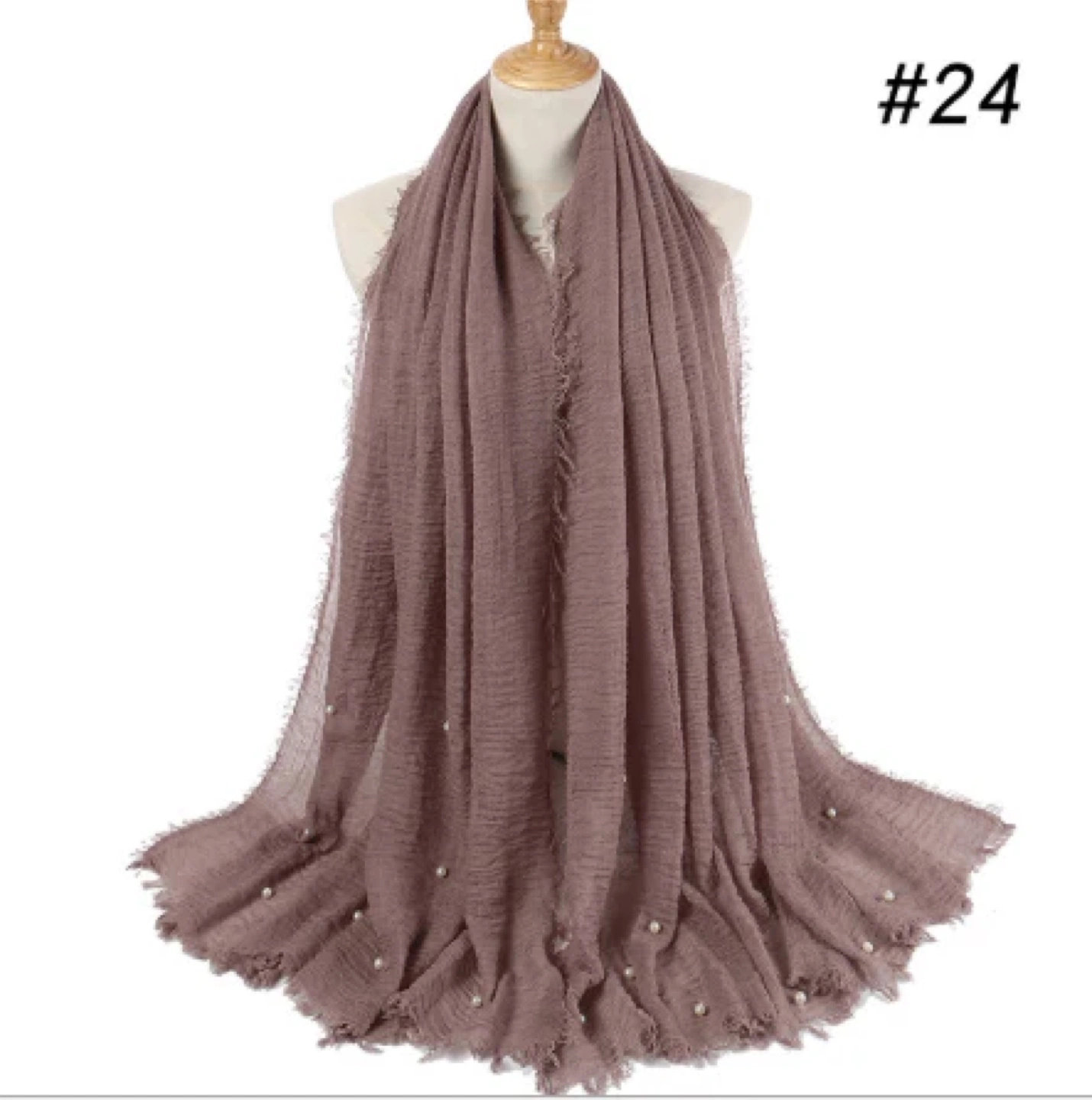 - This is a beautiful taupe/dusty khaki/brown hijab/shawl/scarf with elegant pearl accents!