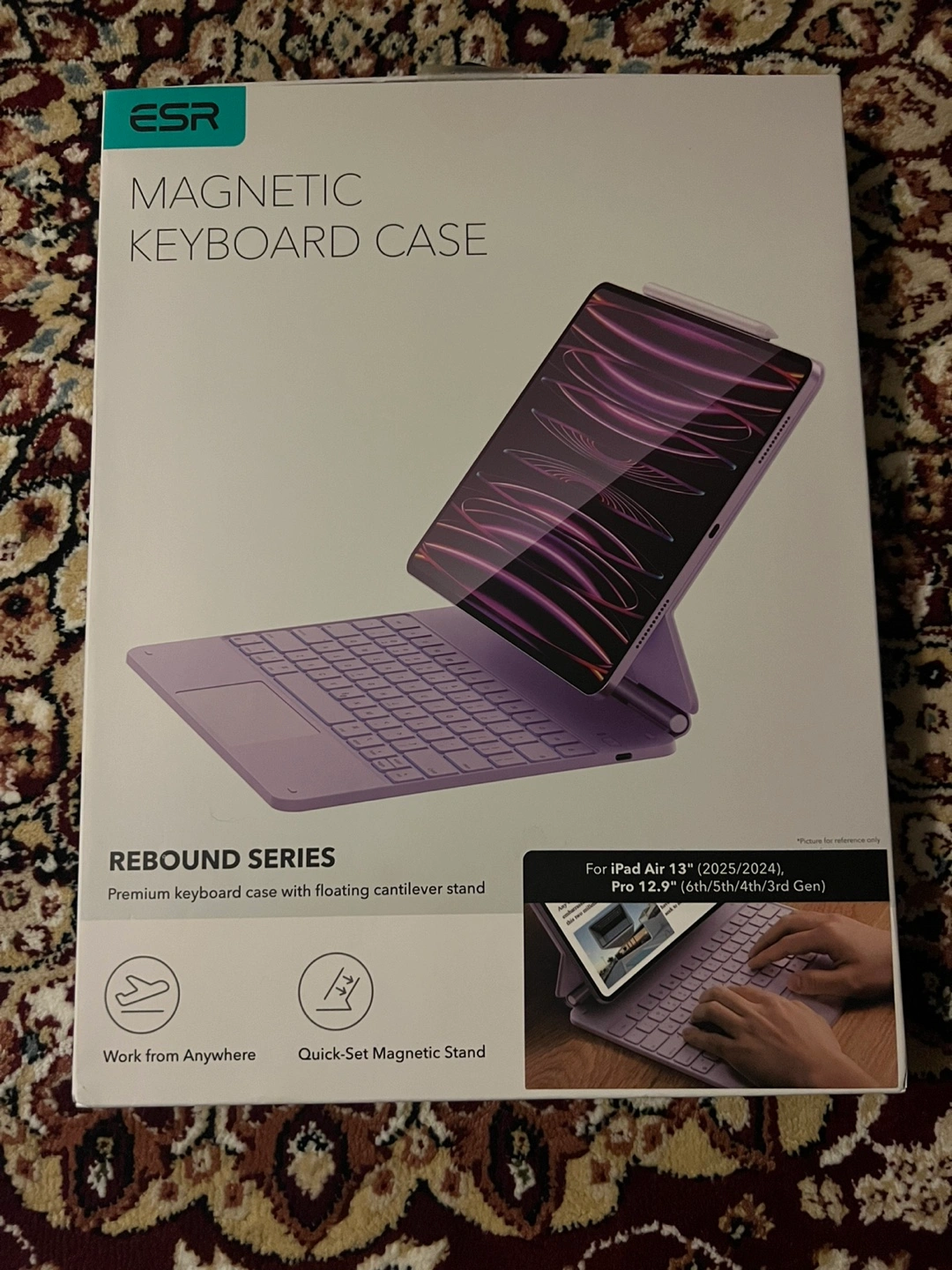 Selling an ESR Rebound Series Magnetic Keyboard Case for the iPad Air 13" (2024, 6th Gen) and iPad Pro 12.9" (5th/4th/3rd Gen)! It features a premium keyboard case with a floating cantilever stand, perfect for working from anywhere with its quick-set magnetic stand Comes with the original box